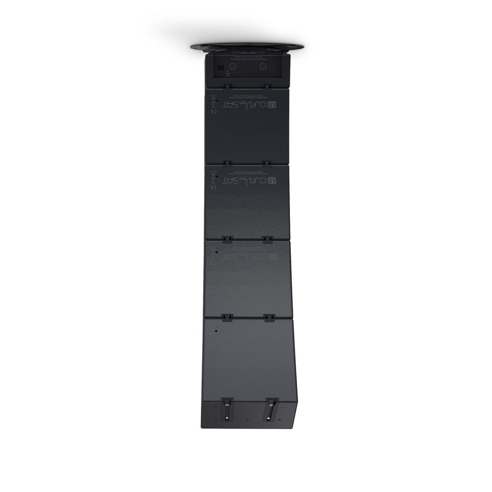El soporte de techo CURV 500 ha sido diseñado especialmente para los sistemas de esta serie y se utiliza para colgar el adaptador SmartLink sobre el que se montan los satélites CURV 500. Es de acero texturizado, se puede girar 360°, y deja una distancia muy corta entre el techo y el altavoz (solo 15 mm). El soporte cumple la norma BGV C1 y se suministra con un cable de seguridad de 20 cm para los satélites. El soporte está disponible en negro o en blanco. Nota: De acuerdo con la normativa BGV-C1, artículo 7, «Protección contra la caída de objetos», los altavoces deben asegurarse al soporte de pared mediante un dispositivo especial, como un cable de acero, para evitar su caída.