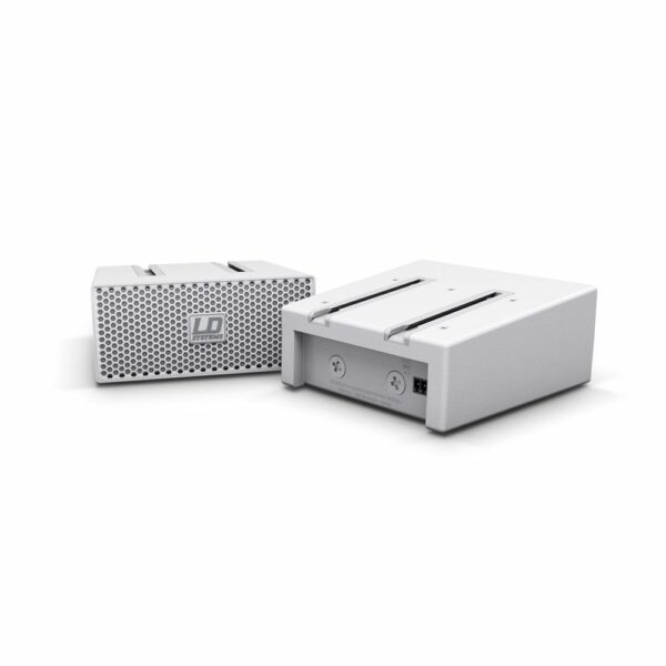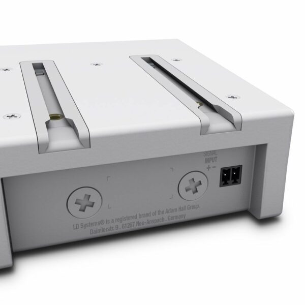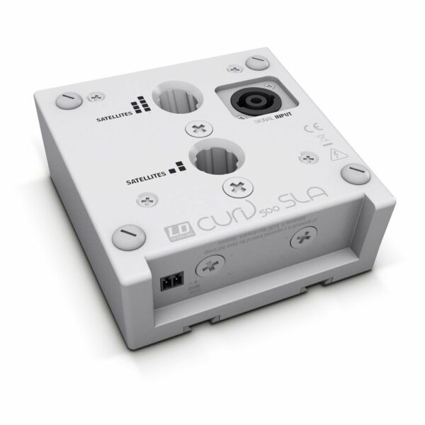 El innovador adaptador SmartLink® es la base perfecta para acoplar los sistemas CURV 500®. Con su mecanismo de acople patentado, se pueden interconectar hasta cuatro satélites sin necesidad de ningún cable. Sus dos vasos de montaje de 16 mm permiten elegir el ángulo de inclinación sobre el soporte. Así, en función de los satélites montados, se podrá optimizar el sonido. Las cuatro roscas M6 para montaje en pared, las cuatro roscas M3 para montaje en techo y los cuatro pies de goma permiten todo tipo de instalación. Está provisto de dos conexiones de entrada: un conector compatible Speakon y un bloque de terminales. En caso de montaje en techo, el logotipo de LD Systems se puede girar fácilmente. La carcasa texturizada de aluminio de fundición tiene un tamaño de 122 x 57 x 122 mm y pesa 0,54 kg.