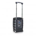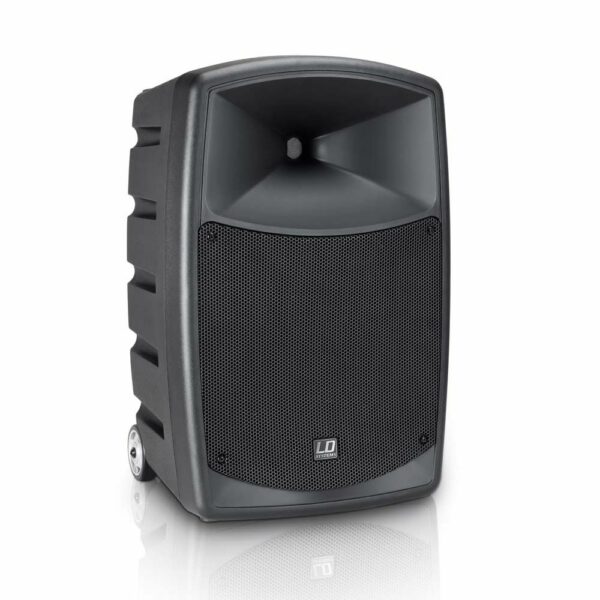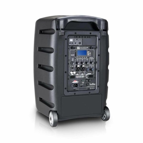 El Roadbuddy de LD Systems es la solución portátil ideal para transmitir música y voz. El altavoz de 2 vías con un woofer Custom Made de 10″ y un motor de agudos de 1″ está alimentado por una batería recargable que proporciona hasta 8 horas de funcionamiento continuo. Incorpora un amplificador de clase D con fuente de alimentación conmutada de alto rendimiento, que entrega una potencia de pico de 480 W. El Roadbuddy se basa totalmente en la transmisión inalámbrica: está equipado con un receptor UHF que opera en la banda de 863 a 865 MHz sin licencia y el sistema es ampliable utilizando otros equipos. El reproductor de audio Bluetooth integrado, con pantalla multifunción retroiluminada, ecualizador, puerto USB y ranura para tarjeta SD, es compatible con los formatos MP3, WMA y WAV. Se incluye un micrófono de mano con una potencia de transmisión de 10 mW (LD RBUD10) o bien como alternativa un micrófono de diadema con petaca (LD RBUD10HS) y el mando a distancia por infrarrojos para el reproductor. En cuanto a conexiones, el Roadbuddy dispone de dos canales con conectores combo y sendos controles de volumen, que pueden conmutar entre los niveles de micrófono y de línea, una entrada estéreo por RCA (se pasa a mono) y una entrada Aux por minijack de 3,5 mm. Por último, este panel integra los controles de agudos, graves, rever y volumen principal. Gracias a sus ruedas y mango extensible integrados, el Roadbuddy de LD Systems resulta fácil de transportar. En la parte superior dispone de un práctico compartimento para almacenar hasta dos micrófonos de mano. La carcasa de plástico de este compacto y ligero equipo incorpora un vaso de montaje en soporte de 35 mm.