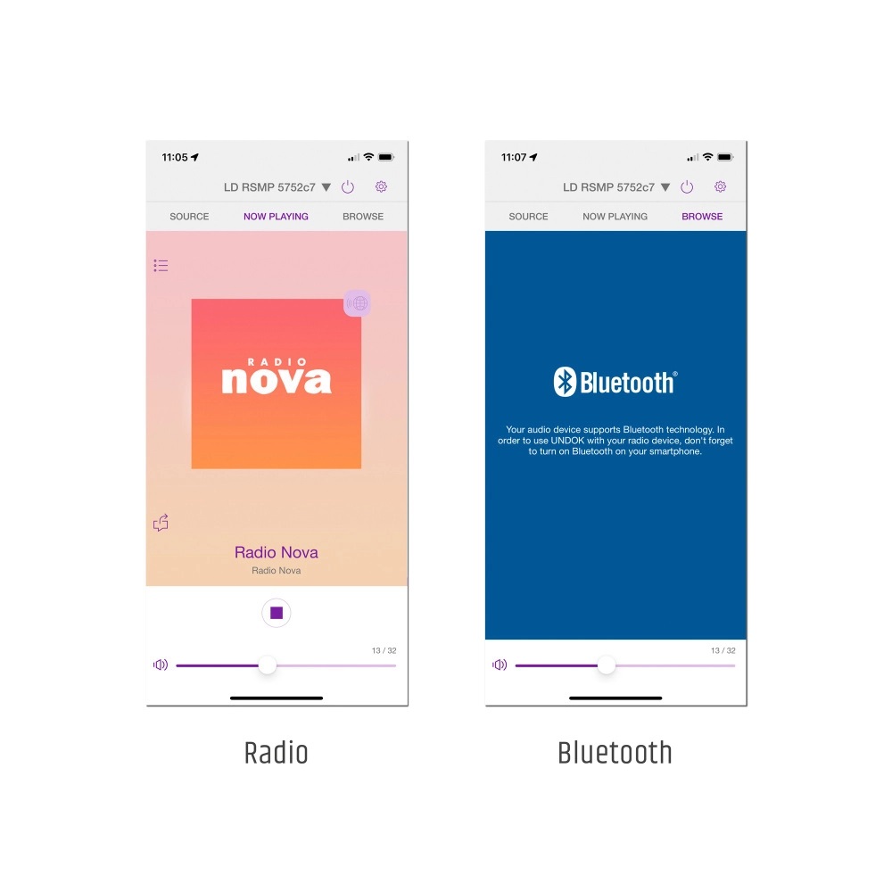 DAB/DAB+, FM Radio, Internet Radio, Receptor de audio Bluetooth, Servicios de streaming de audio, USB Player (.mp3)