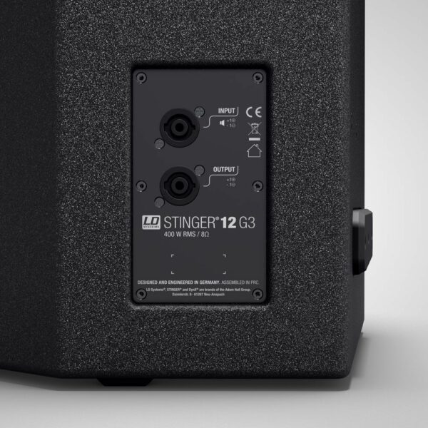 Este altavoz de 2 vías de uso profesional ha sido fabricado para ofrecer una fiabilidad duradera. Gracias a su recinto bass reflex multifuncional, este altavoz se puede utilizar como full range, satélite o monitor de suelo en sistemas de PA portátil y para instalación. El Stinger® 12 G3 tiene una potencia nominal de 400 W y alcanza un SPL máximo de 125 dB. Su woofer de 12″ especialmente desarrollado y el motor de agudos de BMS consiguen una excelente respuesta de graves y unos agudos vivos y naturales. La guía de ondas de agudos ha sido desarrollada mediante el método BEM (Boundary Element Method), una simulación numérica de la dispersión y propagación acústica. Esta guía reduce las reflexiones en suelos y techos, elimina los lóbulos laterales y logra así una dispersión uniforme. El Stinger® 12 G3 está diseñado como un auténtico caballo de batalla. La sólida carcasa de contrachapado de abedul lleva un recubrimiento de poliurea muy resistente que ofrece una excepcional durabilidad y robustez. Otras características destacadas son una rejilla frontal de acero, un vaso de soporte de doble inclinación, puntos de volado y una asa ergonómica. El Stinger® 12 G3 es una solución asequible para refuerzo sonoro profesional y cuenta con una amplia gama de accesorios para escenarios e instalaciones fijas.