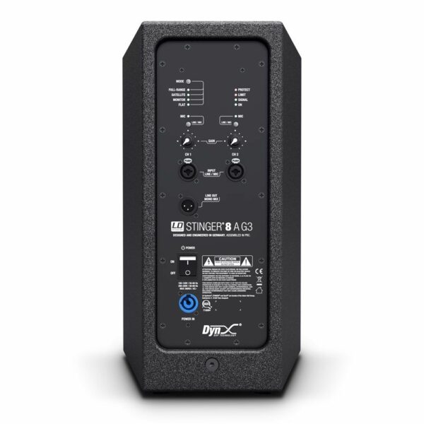 Engineered for rock-solid reliability day in, day out this active 2-way system is a truly professional performer. With its multi-purpose bass reflex construction and carefully contoured, user-friendly presets it is equally suitable for fullrange, satellite or floor monitor applications. The Stinger® 8 A G3 is powered by high efficiency Class D amplification with a hefty 300 watts RMS output. It drives a custom designed 8” woofer and BMS compression driver delivering a punchy low end and smooth, crisp highs. The HF waveguide has been designed using BEM, the numerical modeling of sound radiation and propagation. It reduces floor and ceiling reflections, effectively eliminates side lobes and achieves a controlled uniform coverage pattern. The Stinger® 8 A G3 incorporates LD Systems’ proprietary DynX® DSP technology to ensure top-level performance with maximum clarity and punch at all times. Processing includes crossover and multiband limiter functions for accurate time alignment and pristine, distortion-free audio. Designed to be a real workhorse throughout, the enclosure is made of rigid birch ply and coated with ultra tough polyurea for extraordinary strength and durability. Sporting a steel front grille, Dual-Tilt pole receptacle, multiple suspension points and ergonomic handles the Stinger® 8 A G3 is an attractively priced choice for truly professional sound reinforcement. A large selection of accessories facilitate live and installed applications.