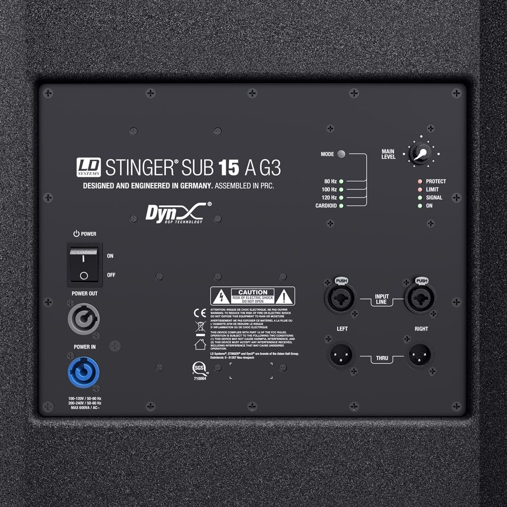 Diseñado para una fiabilidad sólida día tras día, este subwoofer activo es un intérprete verdaderamente profesional. Con ajustes preestablecidos integrados para una rápida integración del sistema y una variedad de configuraciones de matriz cardioide, es completamente fácil de usar. El Stinger® SUB 15 A G3 funciona con amplificación de Clase D de alta eficiencia con una poderosa salida RMS de 450 vatios. Conduce un woofer de 15 «diseñado a medida que ofrece un extremo inferior enorme con un golpe excelente y una definición excelente. El Stinger® SUB 15 A G3 incorpora la tecnología DynX® DSP patentada de LD Systems para garantizar un rendimiento de alto nivel y una reproducción de graves impecable y sin distorsiones en todo momento. Diseñado para ser un verdadero caballo de batalla en todo momento, el recinto bien reflejado de graves está construido para orientación horizontal y vertical. Está hecho de una capa rígida de abedul de 18 mm y recubierto con poliurea ultra resistente para una resistencia y durabilidad extraordinarias. Con una parrilla frontal de acero, un inserto de poste roscado M20, huecos de apilamiento y asas ergonómicas, el Stinger® 15 A G3 es una opción de precio atractivo para un refuerzo de sonido verdaderamente profesional. Una gran selección de accesorios facilita las aplicaciones en vivo e instaladas.
