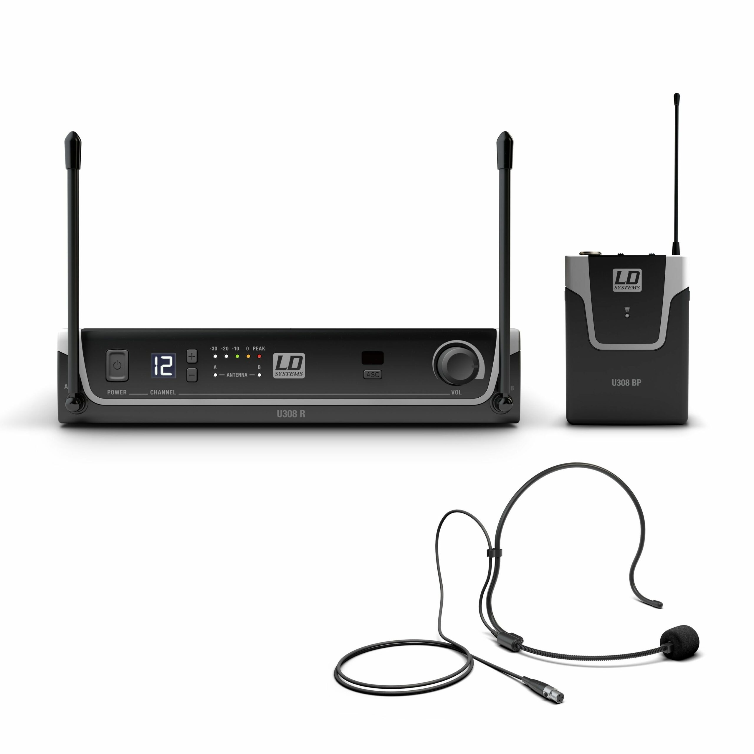 LD U308 BPH – Micrófono inalámbrico de diadema, Sistema con petaca y micrófono de diadema, color negro