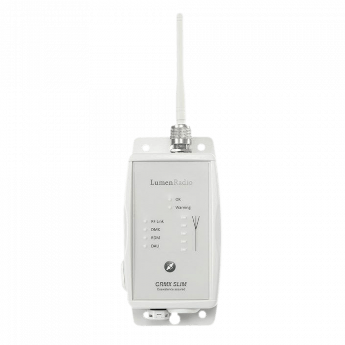 Cód. 51521 Lumenradio – CRMX Slim TX – Transmisor DMX IP65 con DALI/DSI DESCRIPCIÓN Pequeño transmisor Wireless DMX/RDM IP65 con tecnología CRMX DALI/DSI Alcance de enlace de hasta 1000 m Latencia de 5 m Coexistencia cognitiva automatizada El LumenRadio CRMX Slim TX es un transmisor DMX con clasificación IP65 para un universo DMX de hasta 512 canales a la máxima frecuencia de actualización. Es posible utilizar varias unidades CRMX Slim TX juntas para transmitir varios universos DMX, lo que permite ampliar fácilmente el sistema. CRMX Slim TX es el producto de control Wireless DMX más pequeño disponible, apto para el…