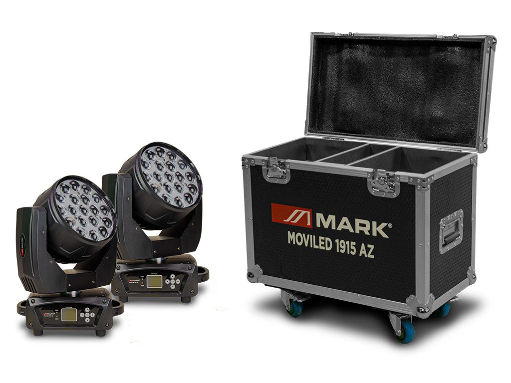 Cód. 2 x MOVILED 1915 AZ + FLIGHTCASE99PAV029 MARK – 2 x MOVILED 1915 AZ + FLIGHTCASE 99PAV029 – 2x Cabezas Móviles Wash LED + flightcase de 19×15 w. RGBW