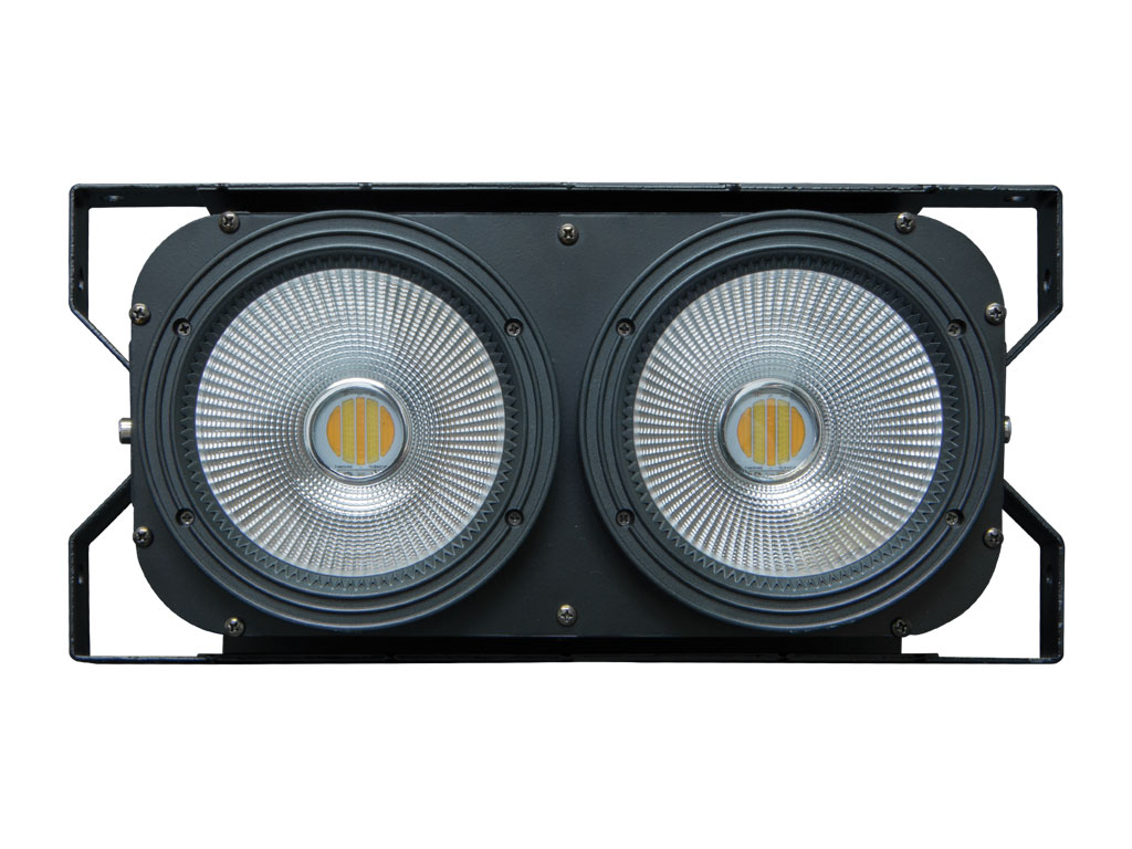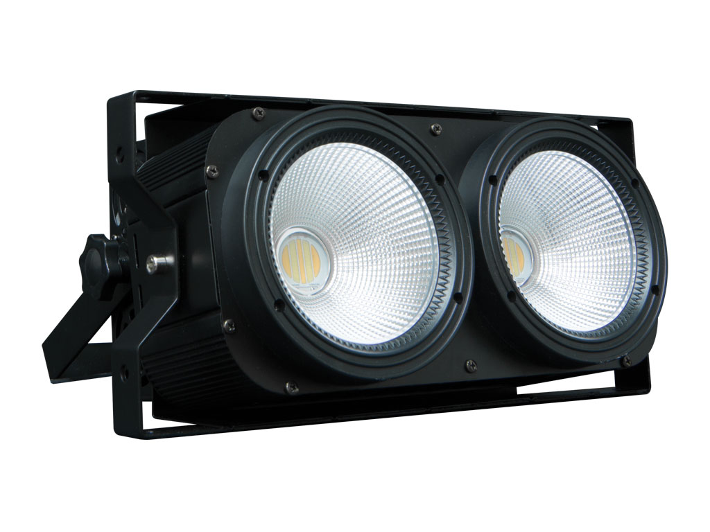 Cód. BLINDER 2L Mark – BLINDER 2L – Cegadora LED COB, 2 LEDs tipo COB Blanco + Blanco cálido de 100 W Temperatura de color 3000ºK o 6000ºK Cegadora LED COB BLINDER 2L es una cegadora que incluye 2 LEDs COB de color blanco + blanco cálido de hasta 100W cada uno que permiten obtener una gran potencia lumínica, muy adecuada en espectáculos en vivo, aplicaciones de touring, etc. Dispone una pantalla con toda la información y botones para navegar a través de menús, seleccionando parámetros tales como velocidad de estrobo funcionando en modo automático, programas internos o sensibilidad de…