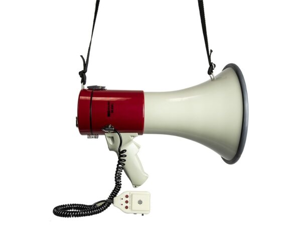 Cód. ER 525 L MARK – ER 525 L – Megáfono de mano. 25 W. Alimentación con 8 pilas tipo D. Batería de Li recargable. USB Megáfono de mano Características Sirena USB Hasta 20 grabaciones Micrófono desmontable Batería de Li recargable 12V DC