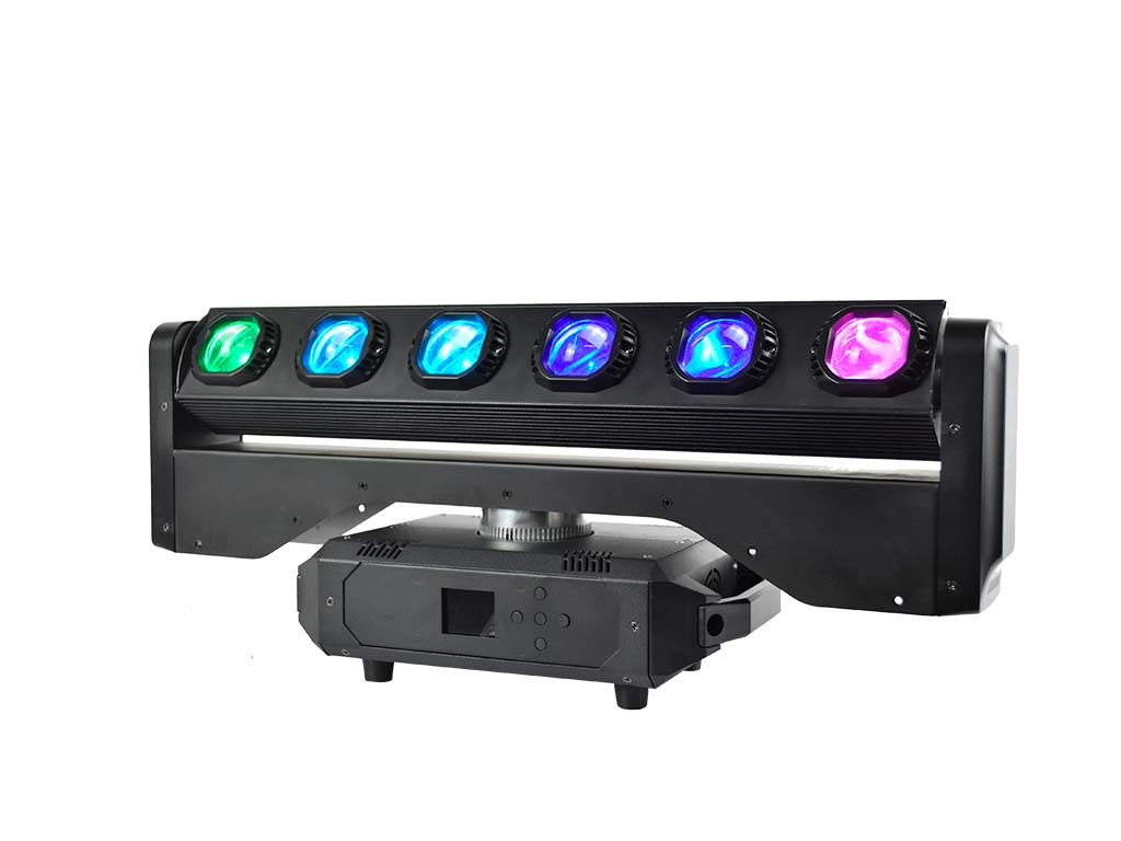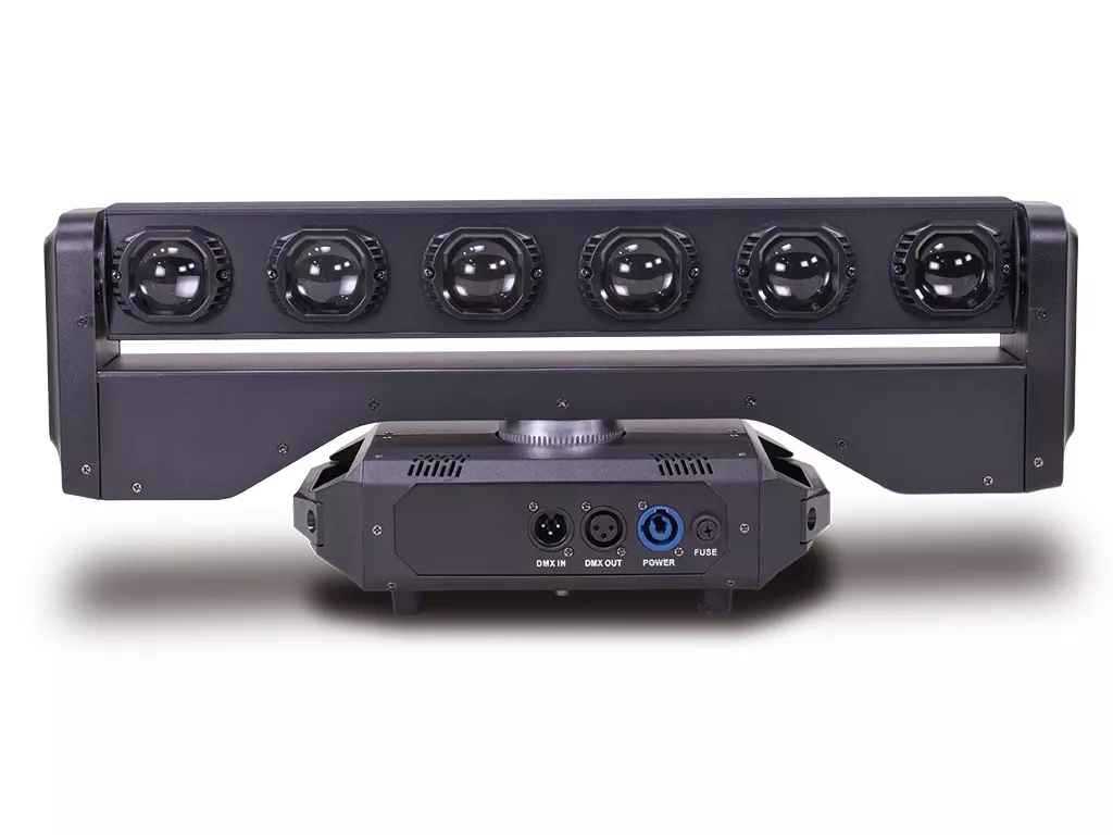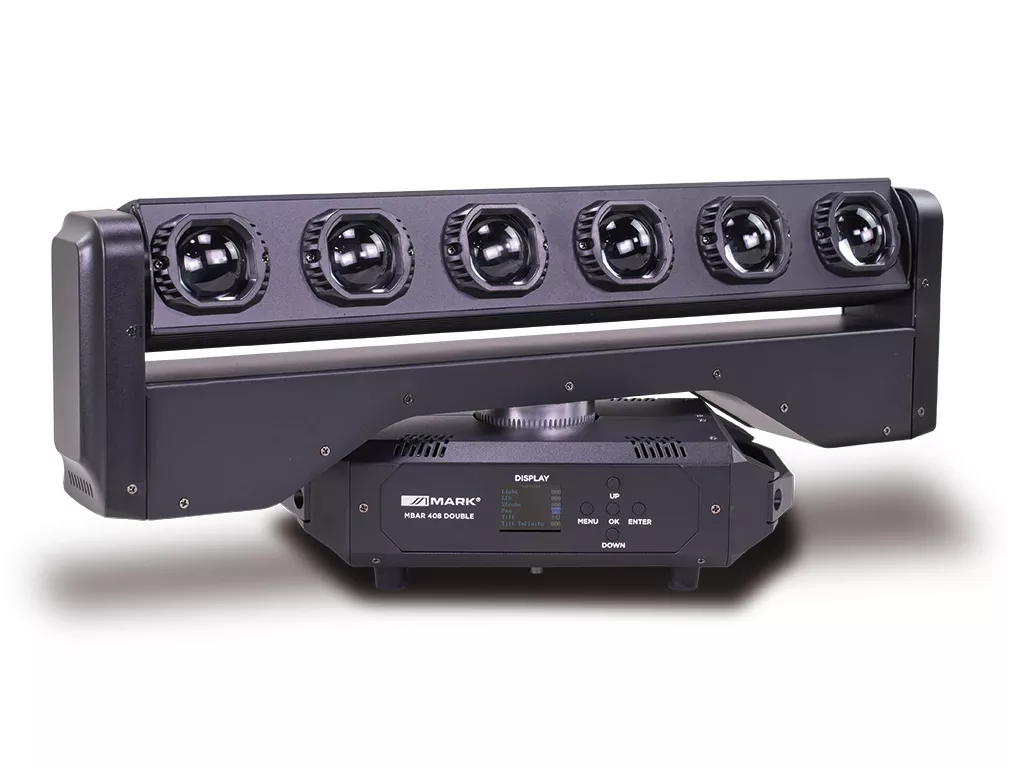 Cód. MBAR 408 DOUBLE Mark – MBAR 408 DOUBLE – Barra LED. 6x LEDs RGBW 4en1 40W c.u. + 56x LEDs 1W blanco+ 224x RGB 0.5W DESCRIPCIÓN MBAR 408 DOUBLE es una barra de iluminación que incluye 6x LEDs RGBW 4en1 40W c.u. + 56x LEDs 1W blanco+ 224x RGB 0.5W.  Estos brillantes LEDs permiten obtener un rico espectro de tonos y efectos.  Incorpora motores silenciosos para la rotación de la barra en 540º en el eje X y rotación infinita en eje Y.La interfaz de configuración tiene una pantalla con toda la información y botones para navegar por los…