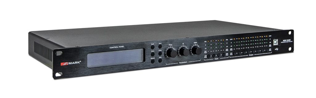 Cód. MDX 0408 MARK – MDX 0408 – Procesador de audio digital de 4 In/8 Out DSP 24 bit. MDX 0408 es un procesador de audio profesional que puede realizar una gran variedad de funciones DSP. Integra compresores, limitadores, divisores de frecuencia, EQ dinámica, delays, ecualizadores, entrada y salida con corrección de fase FIR y mezcladores de audio. La matriz se puede depurar y supervisar rápidamente a través del software dedicado, que proporciona un amplio espacio operativo para la construcción y el funcionamiento de sistemas de amplificación de audio profesionales. MDX 0408 puede gestionar de 4 entradas a 8 salidas.…