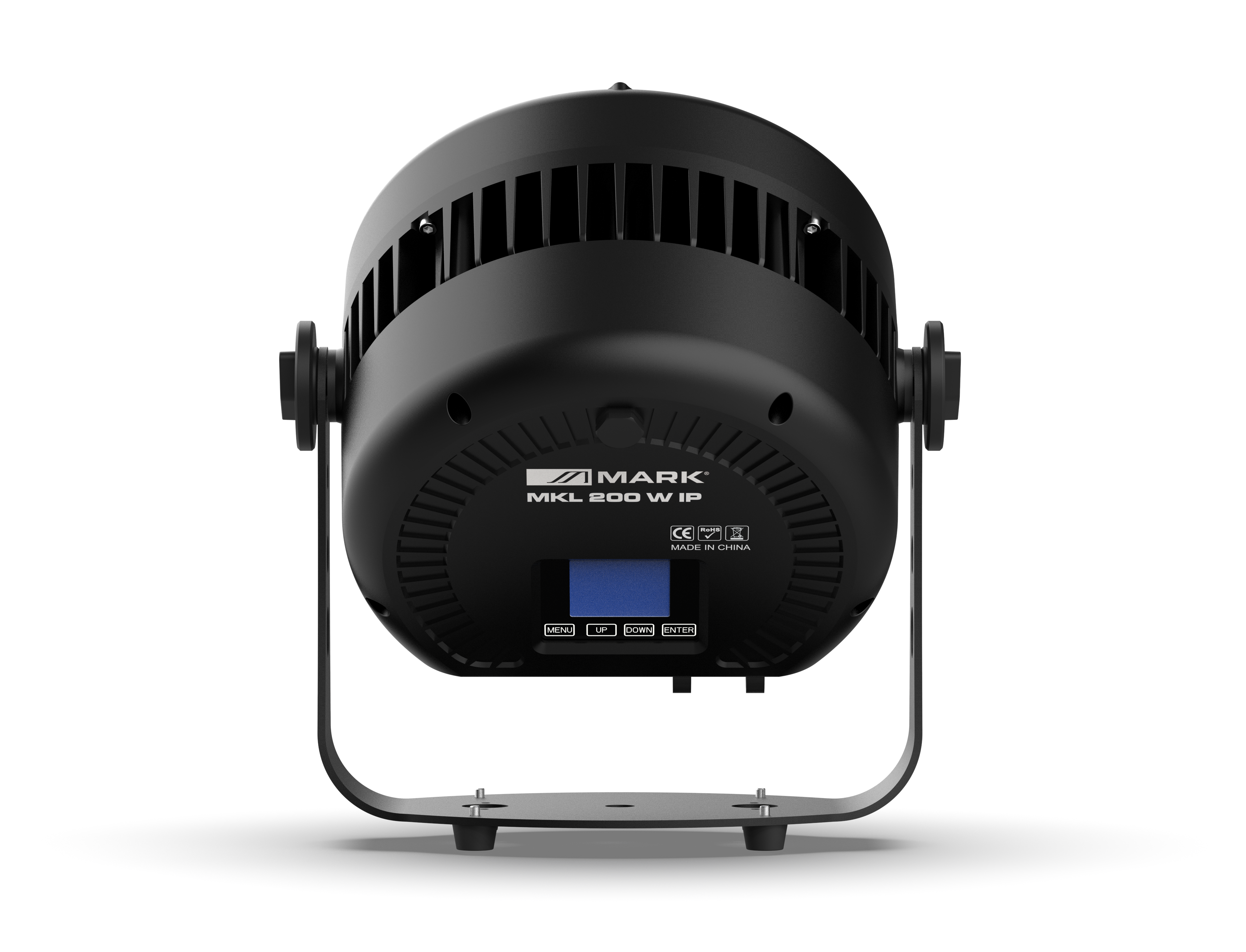 Cód. MKL 200 RGBA IP MARK – MKL 200 RGBA IP – Foco LED RGBA, 1x LED tipo COB RGBA (4 en 1) de 200W, IP65, Ángulo de haz 60º Foco LED RGBA   MKL 200 RGBA IP es un proyector waterproof que incluye 1x LED tipo COB RGBA (4 en 1) de 200W. Este dispositivo permite obtener ricas variaciones de color mezclando estos 4 tonos. La interfaz de configuración dispone de una pantalla con toda la información y botones para navegar por los menús, seleccionando parámetros como dimmer manual, colores fijos y estrobo con control de velocidad. El dispositivo…