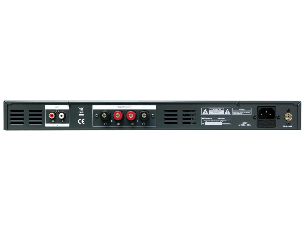 - Amplificador 2 x 100W rms @ 4 ohm (1 HU rack 19″).