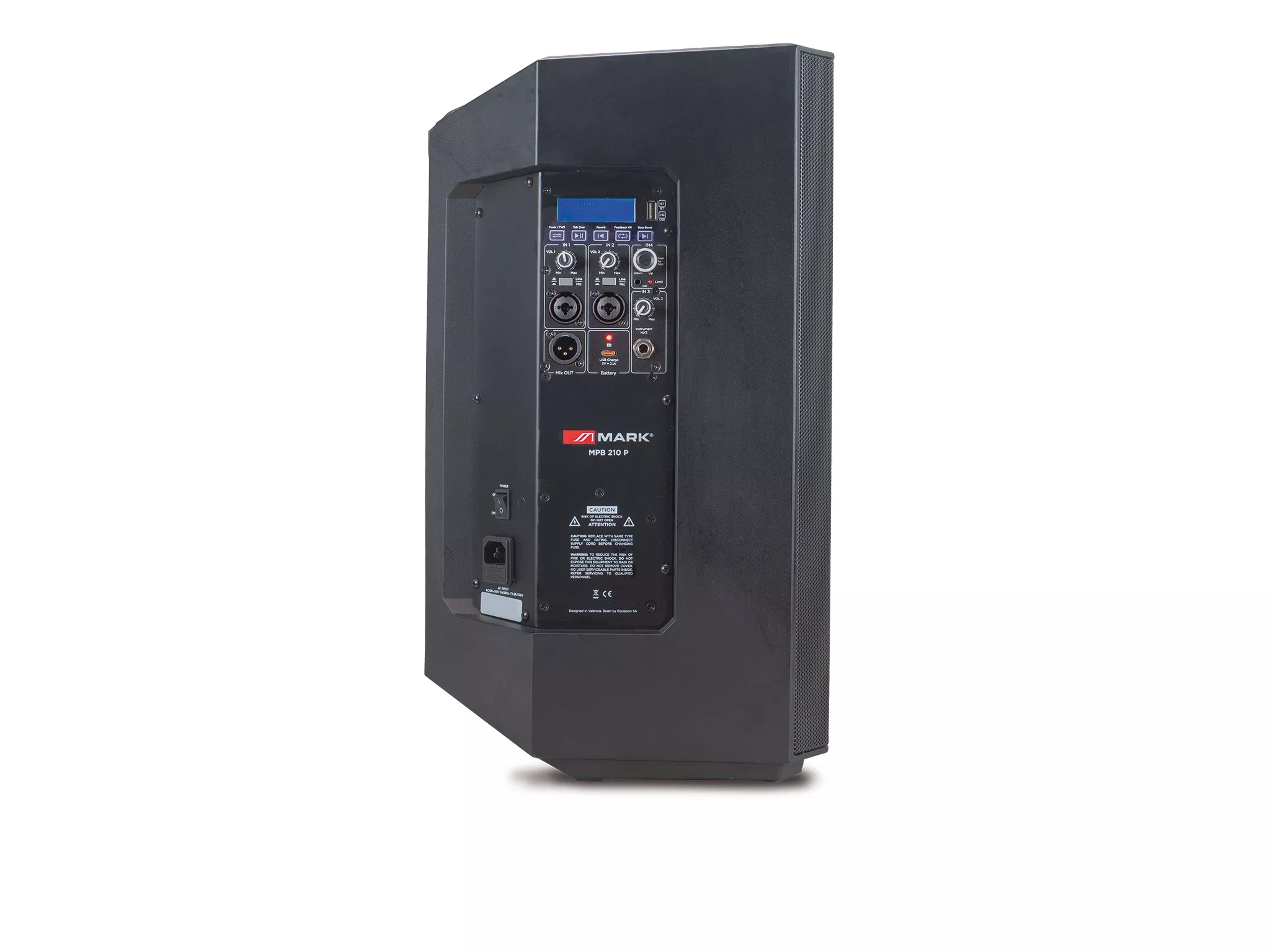 Cód. MPB 210 P Mark – MPB 210 P – Caja acústica activa 10″ 250W con batería recargable Descripción MPB 210 P es un altavoz activo de dos vías fabricado en plástico ABS con una potencia de 250W. Están compuestos por un woofer de 10” y un driver de compresión de 1.34”. Cuenta con 2 entradas MIC/LINE + 1 entrada HI Z y funcionalidades USB y Bluetooth/TWS. Integran un DSP con 4 preajustes de ecualización y funciones adicionales para modificar la curva de respuesta. MPB 210 P se pueden alimentar directamente o mediante la batería recargable integrada con LED indicadores…