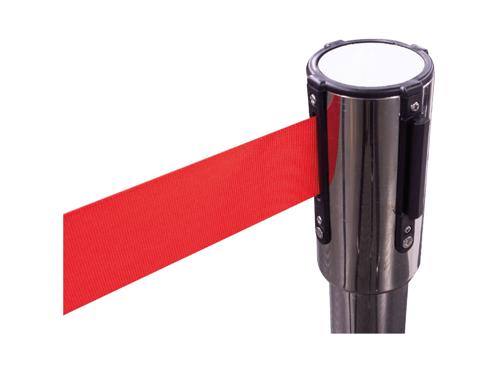 MARK – MPS 60 S – Barrera de cinta retráctil. Cinta 3 m. Peso 6.50 Kg. Cromado. Se suministra por parejas. Precio por unidad.