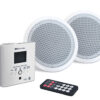 MARK MWP 1 – Amplificador de pared + 2 altavoces de techo 5″. 2x5W., USB/FM /BLUETOOTH de instalación, Caja para empotrar o superficie (incluida). Mando a distancia incluido.
