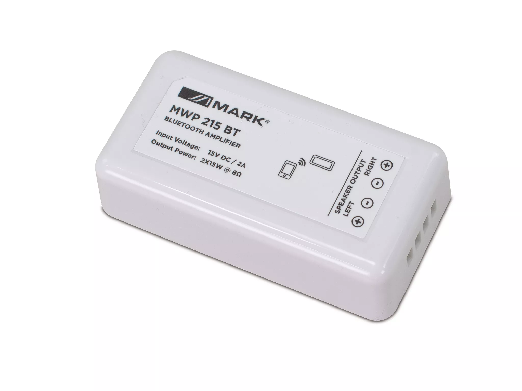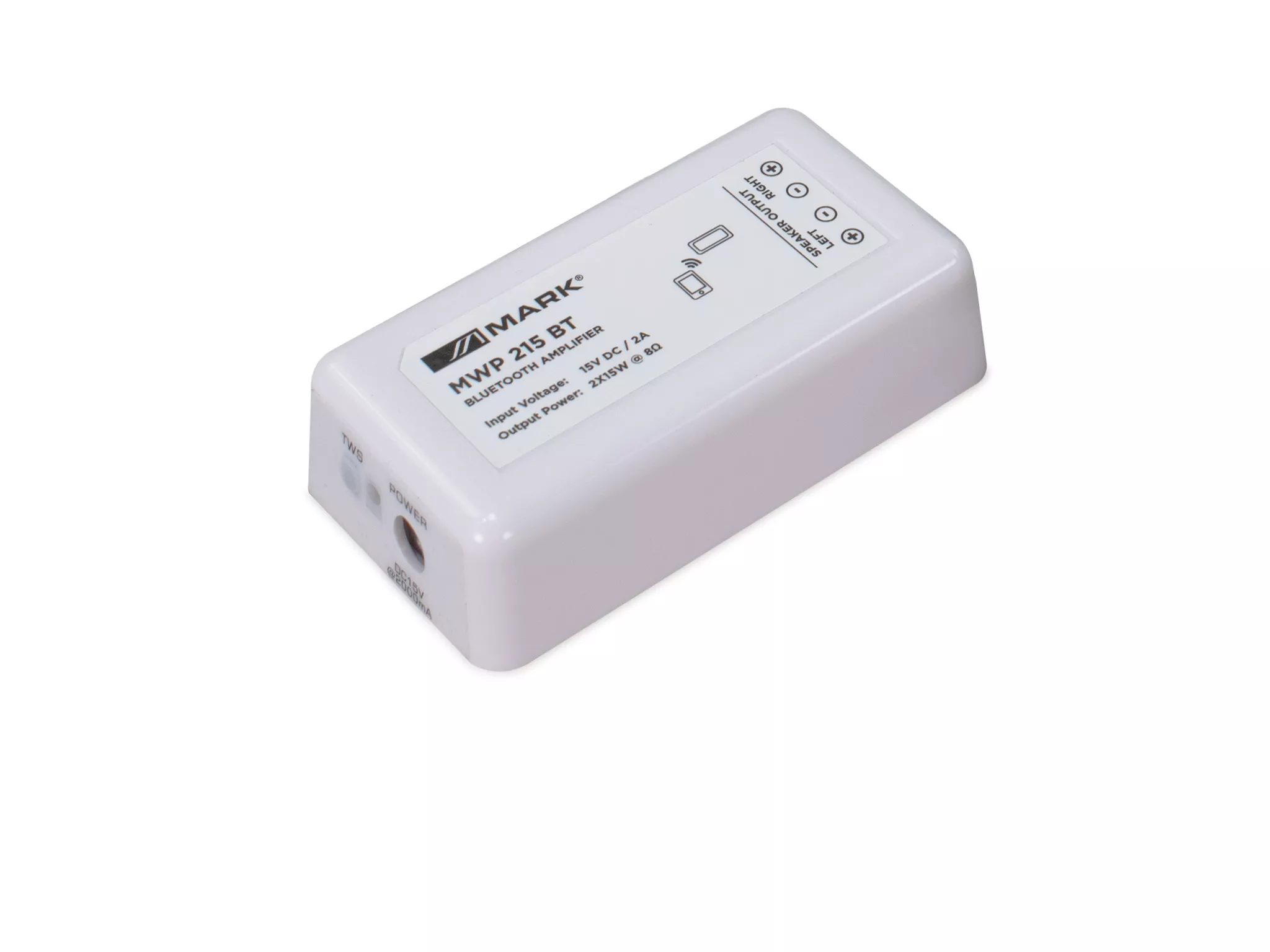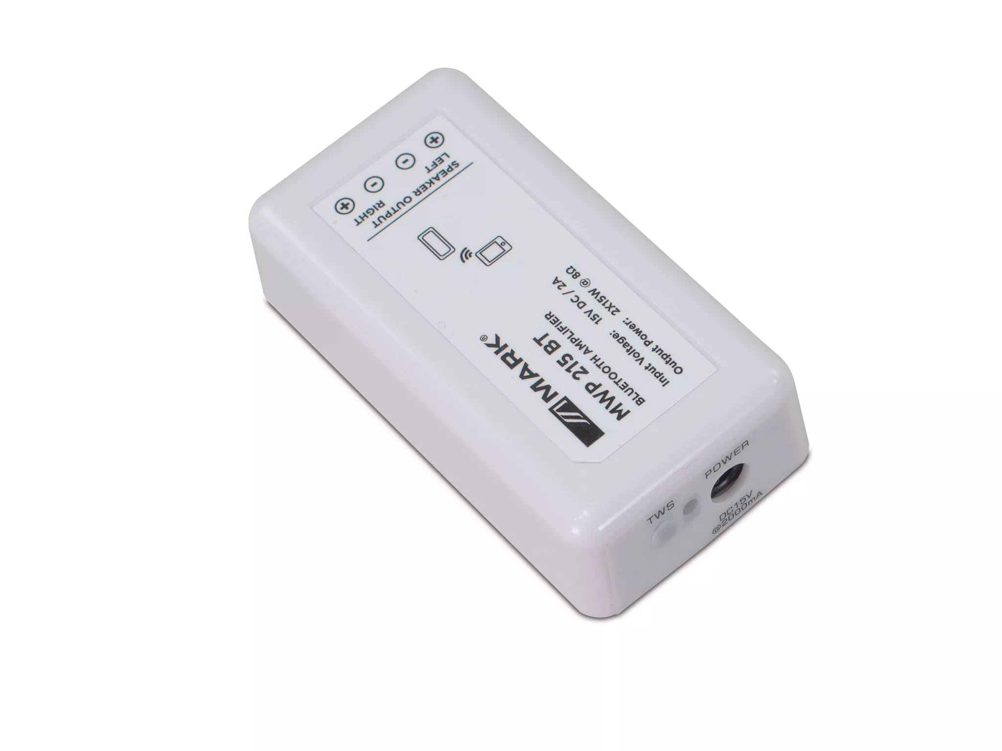 Cód. MWP 215 BT Mark – MWP 215 BT – Amplificador bluetooth 2x15W @ 8 ohm MWP 215 BT es un pequeño amplificador bluetooth estéreo de 2x15W @ 8 ohm. Su pequeño tamaño permite su integración en multitud de aplicaciones, desde oficinas, restaurantes o pequeñas sales de conferencias o exposiciones, su utilidad más practica es como música ambiente. Dispone de alimentador externo para su conexión a la red eléctrica y todas las conexiones se realizan desde su bloque de terminales. También dispone de funcionalidad TWS para enlazar diferentes elementos iguales