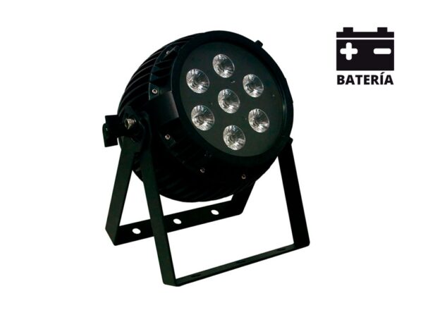 MARK SUPERBAT LED WI 712 – Foco PAR LED autónomo a batería IP65. Proyector iluminación 90W. 7 x 12 W. RGBWA UV , DMX Ch: 4/5/6/7/9/12. Apertura 25º.