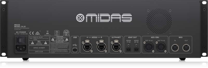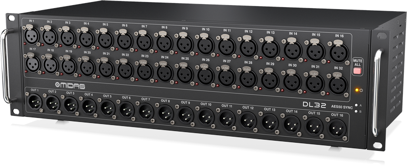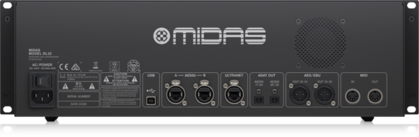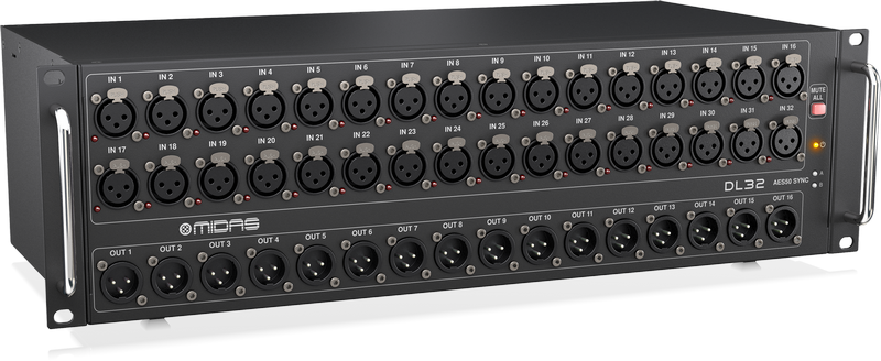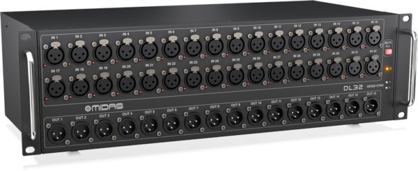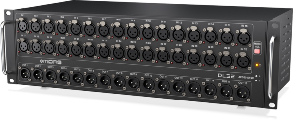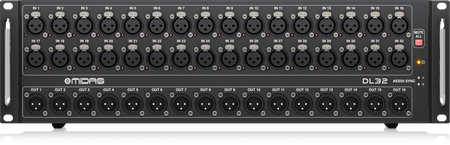 Artículo bajo pedido, consultar oferta, precios especiales Cód. DL32 MIDAS INTERFACE I/O DL32 – Caja de escenario de 32 entradas y 16 salidas con 32 preamplificadores de micrófono Midas PRO , interfaces ULTRANET y ADAT Caja de escenario de 32 entradas y 16 salidas con 32 preamplificadores de micrófono Midas, interfaces ULTRANET y ADAT 32 galardonados preamplificadores de micrófono Midas PRO con alimentación phantom conmutable de 48 V 16 salidas de nivel de línea de baja impedancia electrónicamente balanceadas Conectividad del sistema de monitoreo personal ULTRANET para aplicaciones en el oído Audio digital y conectividad de control para sistemas de altavoces Turbosound…