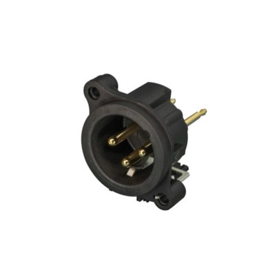 Cód. NC3MAV Neutrik – NC3MAV – Receptáculo XLR macho de 3 polos, conexión a tierra: contacto de tierra separado para la carcasa del conector de acoplamiento y el panel frontal, versión de montaje en placa de circuito impreso vertical. Conector de chasis XLR más pequeño, más alto densidad de empaquetamiento Carcasa de plástico Zona de contacto pulida, chapada en oro duro Inflamabilidad de la carcasa UL94 V-0 Descripción Receptáculo XLR macho de 3 polos, conexión a tierra: contacto de tierra separado con la carcasa del conector y el panel frontal, versión de montaje vertical en PCB.