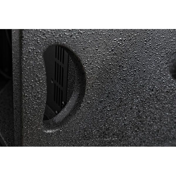 Construcción del recinto: contrachapado de abedul de 18 mm, pintura negra de alta resistencia, rejilla de metal de 1,5T con espuma, dos asas a cada lado y revestimiento resistente al agua
