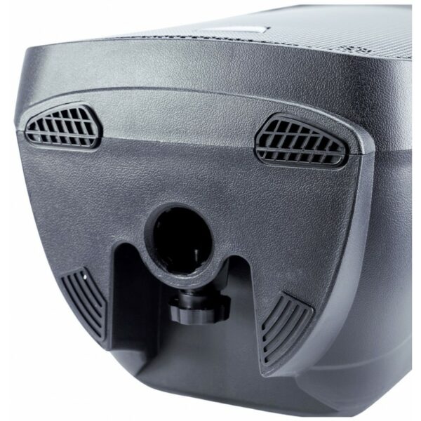 Recinto activo multifunción biamplificado. 400W de Potencia de Pico – 200W RMS. Clase AB. Altavoz de 12″». Impedancia 8 Ohm. Respuesta de frecuencia 50Hz-20Khz. Ecualizador de dos bandas. Entrada Mic (XLR y Jack 1/4″) , Aux IN (XLR y RCA)/MP3. Salida Line OUT (XLR). Ecualizador de 2 Bandas. Reproductor de USB, SD, Bluetooth y Radio FM integrado. Control Remoto IR. Pantalla LCD. LED de Encendido y Saturación. Vaso estándar de 1-3/8″ (35mm). Posibilidad de uso como monitor de suelo. Peso aprox 10Kg. Dimensiones 380x 300 x 575 mm.