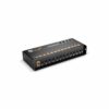 El PWT 12 es una fuente de alimentación universal para pedalera con una capacidad de salida enorme de 2,000 mA y 12 tomacorrientes aislados con polaridad negativa central estándar. Las cuatro salidas varían de 9 a 18 voltios, y con el cable en Y incluido, dos pueden combinarse en una sola salida con un máximo de 36 voltios. Además, las salidas variables se pueden usar para simular la caída del voltaje de las baterías gastadas. Con protección contra cortocircuitos y sobrecargas, el PWT 12 está completamente regulado para entregar voltaje constante. La unidad cuenta con un LED de encendido, LED de estado de salida bicolor y viene con un conjunto de cables de CC y un adaptador de red dedicado. El PWT 12 es la opción ideal para pedales que consumen mucha energía o efectos de 9 voltios que se pueden ejecutar en corrientes de CC más altas para obtener más dinámica y espacio.