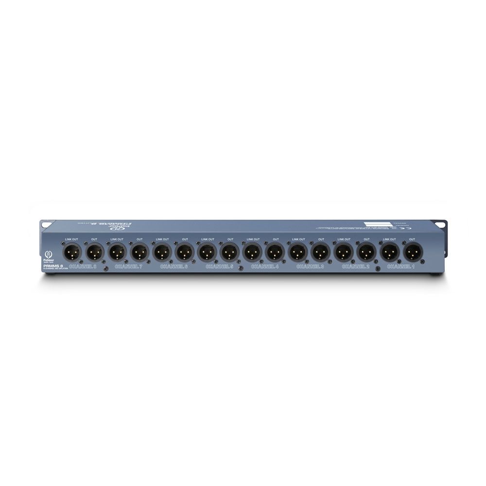 PRMMS8 es un splitter de micrófonos de 19″ de muy bajo nivel de ruido con 8 entradas balanceadas XLR, cada una de ellas distribuida a 1 salida directa y a 1 salida aislada por transformador. Para conseguir una mayor versatilidad, está equipado en el frontal con 4 conmutadores LINK para poder combinar cada par de canales en uno solo. De este modo, se puede distribuir una señal de entrada a cuatro salidas y enviarlas a las mesas de mezcla para FOH, monitorado, grabación y transmisión de radio, o combinar dos señales de entrada en una única señal de salida. Los micrófonos de condensador pueden recibir alimentación fantasma por medio de las salidas directas. Cada canal está provisto de un conmutador Ground-Lift para reducir los bucles de masa y las interferencias que pueden producirse debido a la doble conexión a tierra de equipos conectados a la red eléctrica.