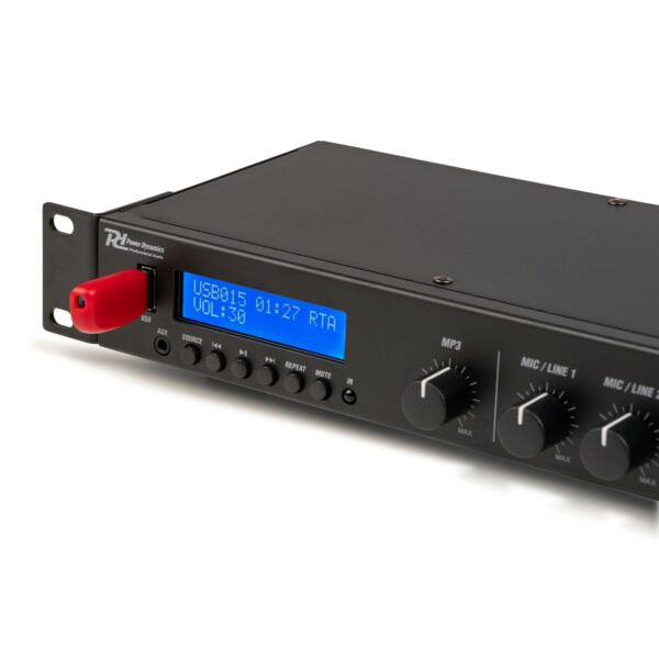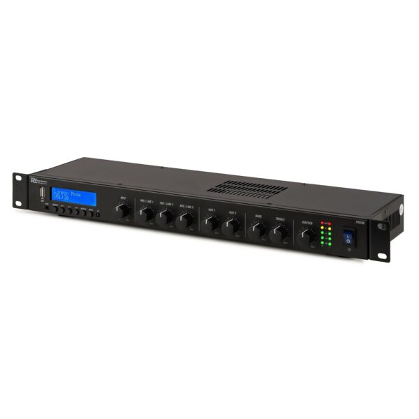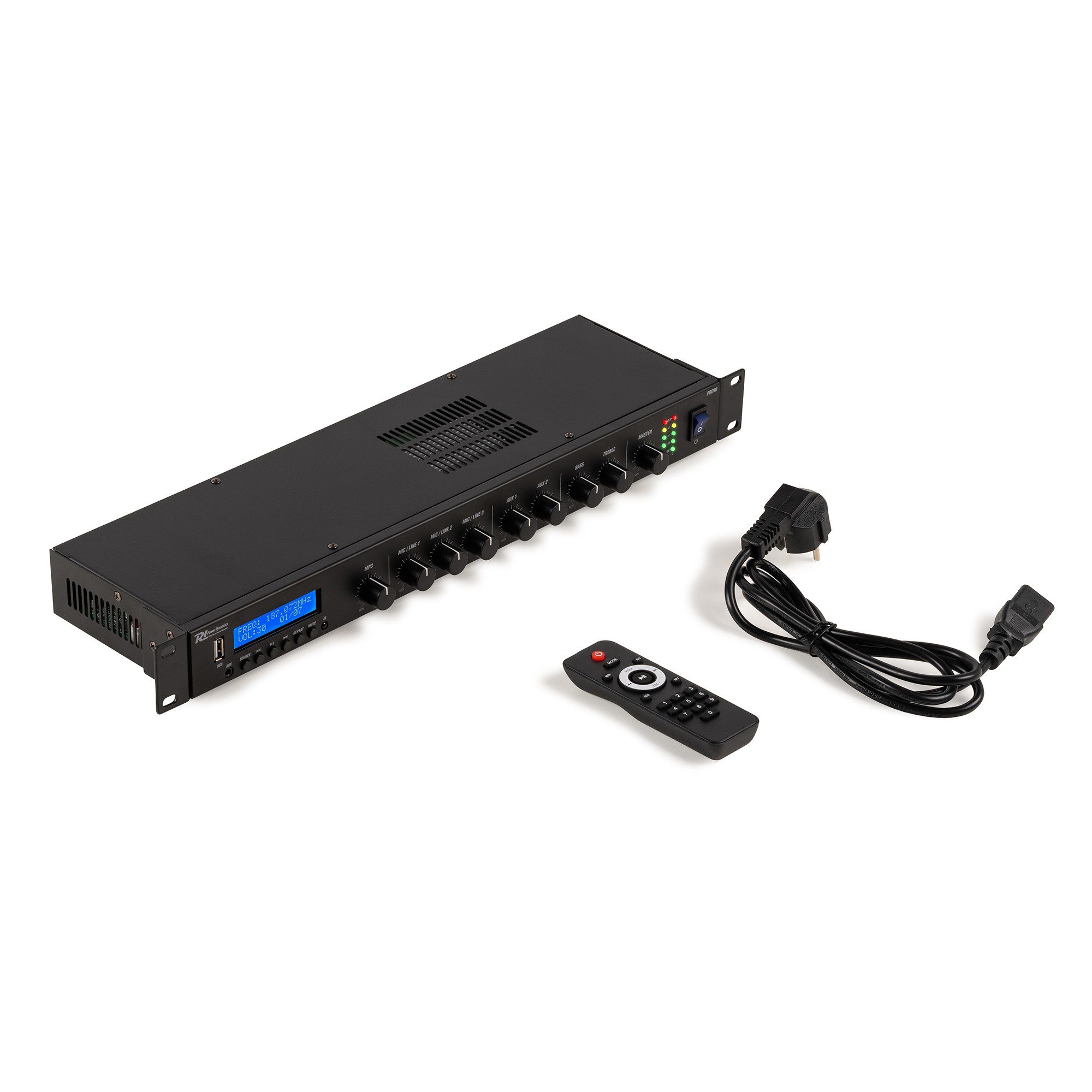 Cód. 172.800 PDC90 – Reproductor multimedia con amplificador DAB+/USB/MP3/BT DESCRIPCIÓN El PDC90 es un reproductor multimedia estéreo compacto con un amplificador de clase D incorporado. Este reproductor todo en uno está equipado con un sintonizador DAB+, una ranura USB y un receptor BT para transmitir música directamente desde su teléfono inteligente/tableta al reproductor. El frente cuenta con una entrada auxiliar de 3,5 mm y la parte trasera está equipada con 3 entradas balanceadas con alimentación phantom que se pueden ajustar con interruptores DIP Mic/Line y 2 entradas estéreo RCA no balanceadas. Reproductor multimedia multifuncional con amplificador Clase D Sintonizador DAB+…