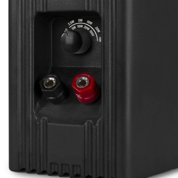Cód. 952.104 Power Dynamics – BC40V – PAREJA ALTAVOCES NEGRO 100V 8 OHM 4″ 100W – IPX5, Resistente a intemperie IPX5 Uso en interior o exterior Descripción La serie BC de Power Dynamics de alta calidad ofrece un sistema tanto de 8 ohmios como de linea de 100V seleccionando un control rotativo de gran facilidad. Todos los modelos son IPX5 permitiendo las aplicaciones en exterior. Las rejillas y cierres estan construidas en aluminio de grado marino y pintados con lo ultimo en proteccion ambiental para alargar la vida de los altavoces y permitir su uso en las condiciones mas adversas.…
