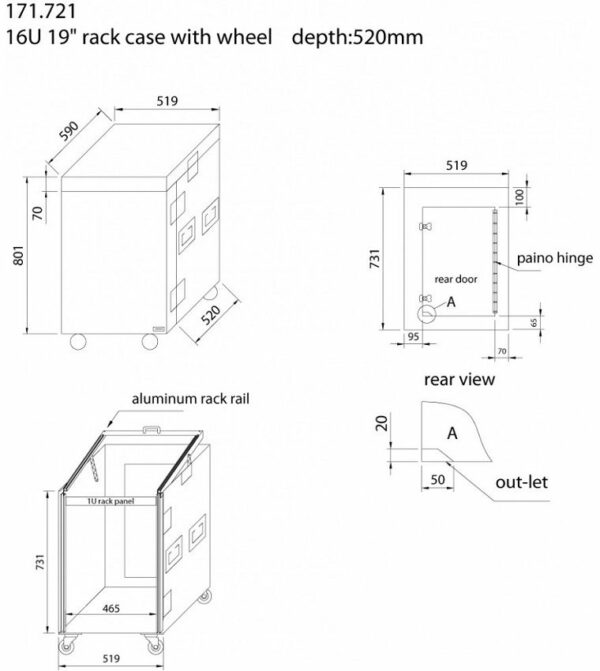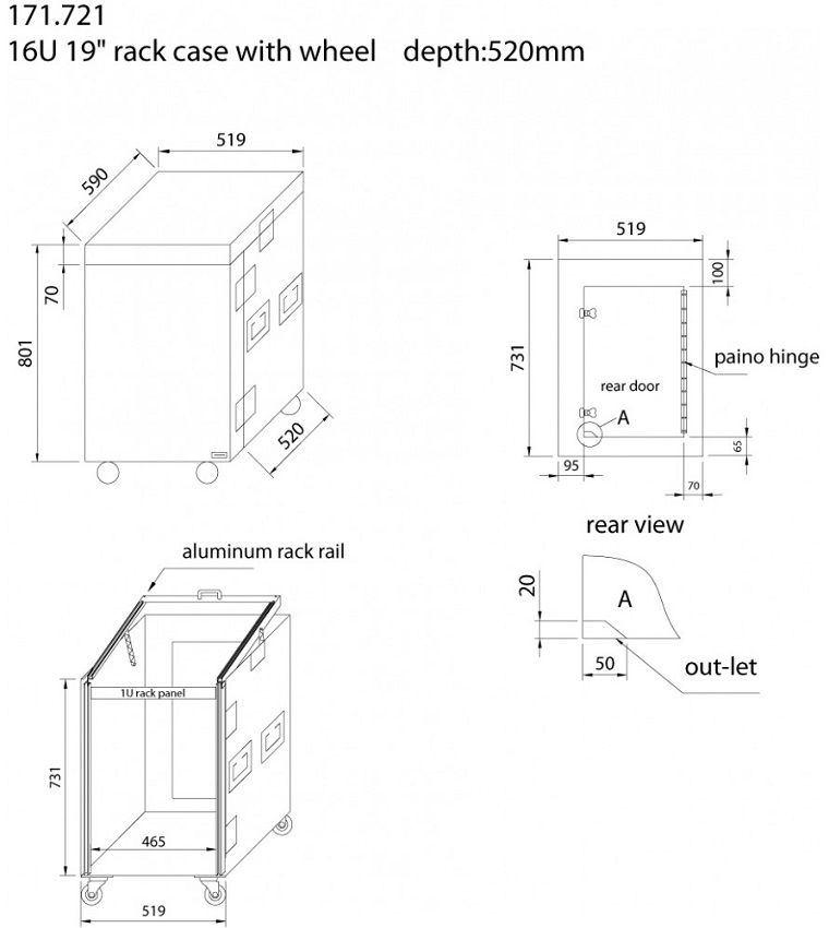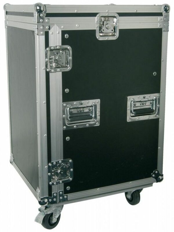 Cód. 171.721 POWER DYNAMICS   PDF16U8 – RACK de transporte 19″ 16U con ruedas incluidas. Descripción Rack 16U De luxe para equipo móvil con posibilidad de montar un mezclador (8U) de 19″ sobre la parte superior de la unidad. Tapa frontal y superior totalmente desmontables. Caja de rack robusta con 4 Pestillos tipo mariposa. Altura 16U (H) y Hueco de 1U Con 4 ruedas 4″ Espacio de 8U en la parte superior para un mezclador. El panel superior incluye bisagras para poner el mezclador inclinado. Railes de aluminio
