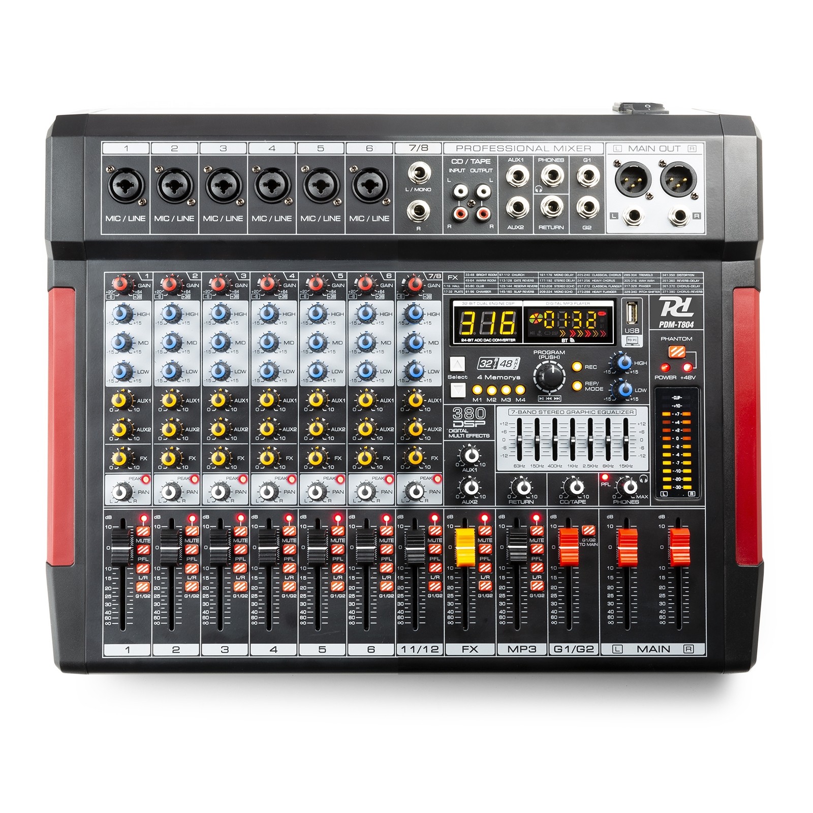 Cód. 172.662 Power Dynamics – PDM-T804 MEZCLADOR DE DIRECTO 8 CANALES DSP/MP3, equipados con un procesador de efectos DSP de 32 bits, ecualizador gráfico estéreo de 7 bandas, capacidad de transmisión BT y entrada/salida USB Descripción La serie PDM-T es una serie de mezcladores de escenario equipados con un procesador de efectos DSP de 32 bits, ecualizador gráfico estéreo de 7 bandas, capacidad de transmisión BT y entrada/salida USB para una fácil conexión al ordenador para grabación de música, etc. También es posible utilizar la función de grabación con un solo clic para grabar fácilmente MP3 en una memoria USB.…