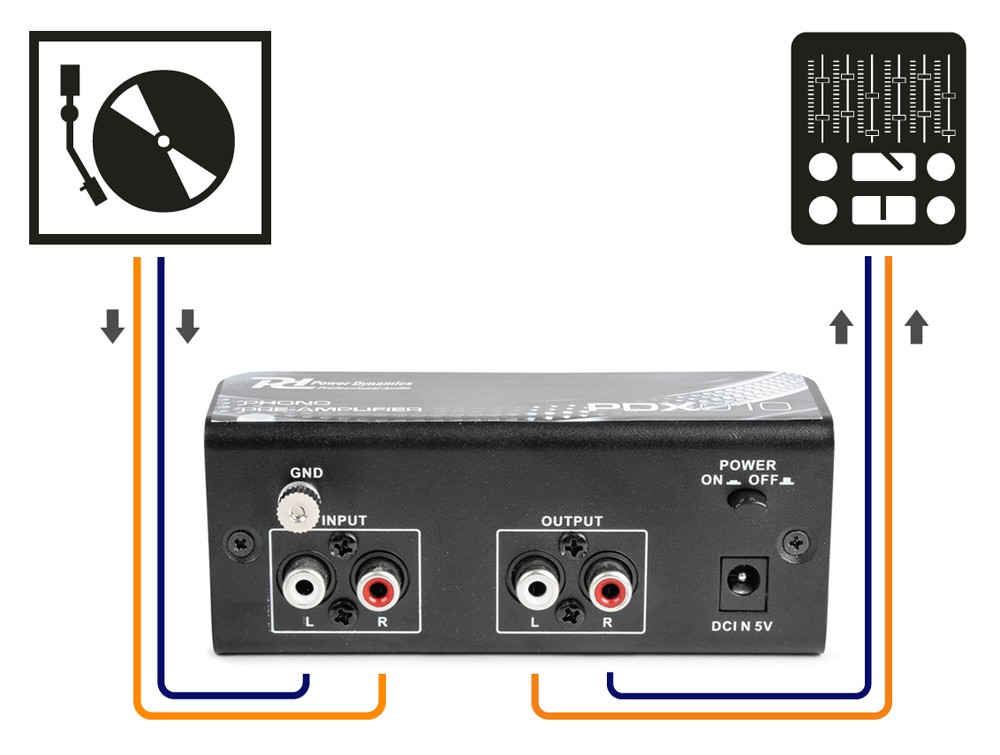 Cód. 172.772 POWER DYNAMICS – PDX010 PREAMPLIFICADOR PHONO – Con este previo phono usted puede volver a conectar su antiguo giradiscos a su nuevo amplificador..en una entrada de línea El PDX010 es un preamplificador de Phono para poder conectar giradiscos a una entrada linea de amplificador. El pre-amplificador con correccion RIAA amplifica la tenue señal de un giradiscos a la señal de linea. La correccion RIAA mejora totalmente la sonoridad del sistema. Con este previo phono usted puede volver a conectar su antiguo giradiscos a su nuevo amplificador.. RCA in-/out Ecualizacion RIAA Carcasa duradera Conexion de masa