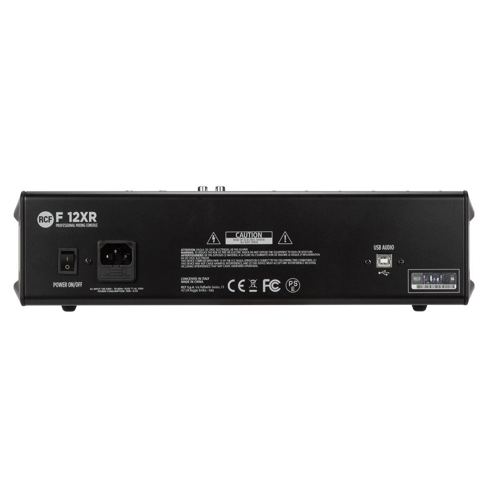 Cód. 17140090 RCF Audio – F 12XR – 90-240V Mesa de mezclas de 12 canales con multiefectos y grabación Características Entradas: 6 preamplificadores de micrófono 4 líneas mono (1 Hi-Z) 4 líneas estéreo PRO DSP FX integrado con 16 presets Grabación y reproducción estéreo a través del puerto USB 4 compresores con un solo control Un bus de salida estéreo y 2 envíos auxiliares (2 pre, 1 pre/post, 1 post) Canales mono con ecualizador de 3 bandas. Ecualizador de 2 bandas en los canales estéreo. Fuente de alimentación universal interna Diseño sólido, compacto y elegante. La serie F de mesas…