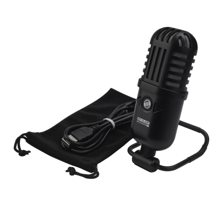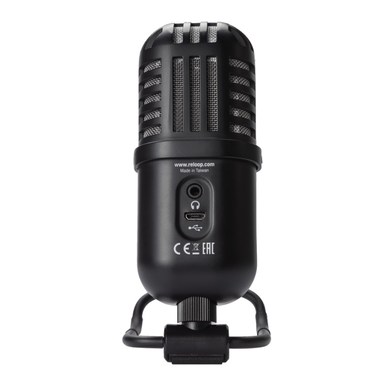 RELOOP – sPODCASTER GO – Micrófono de condensador USB profesional para aplicaciones de podcasting en movilidad ‡Cardioide ‡ Alimentado por USB ‡Salida de auriculares ‡Botón de Mute en el frontal ‡Soporte para colocarlo e inclinarlo integrado ‡
