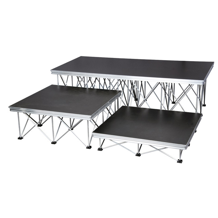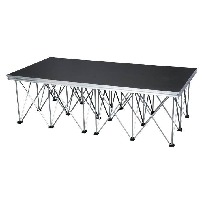 Cód. 70620 Consultar portes Showgear – Mammoth Stage 2 x 1 m, Without legs, tarima sistema de escenario robusto y compacta para interior y exterior ocasional con marco de aluminio El Mammoth Stage es un sistema de escenario compacto y robusto para interiores que es muy fácil de instalar. Piezas de la etapa de peso ligero que son extremadamente robustas, pueden transportar 500 kg/m². En combinación con las Mammoth Legs en forma de tijera, la acumulación es fácil. Adecuado para uso temporal en exteriores.