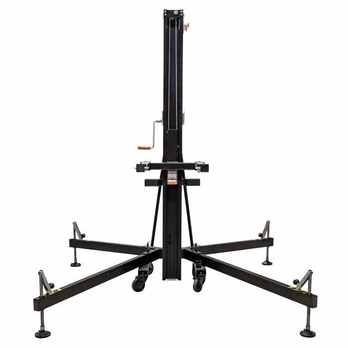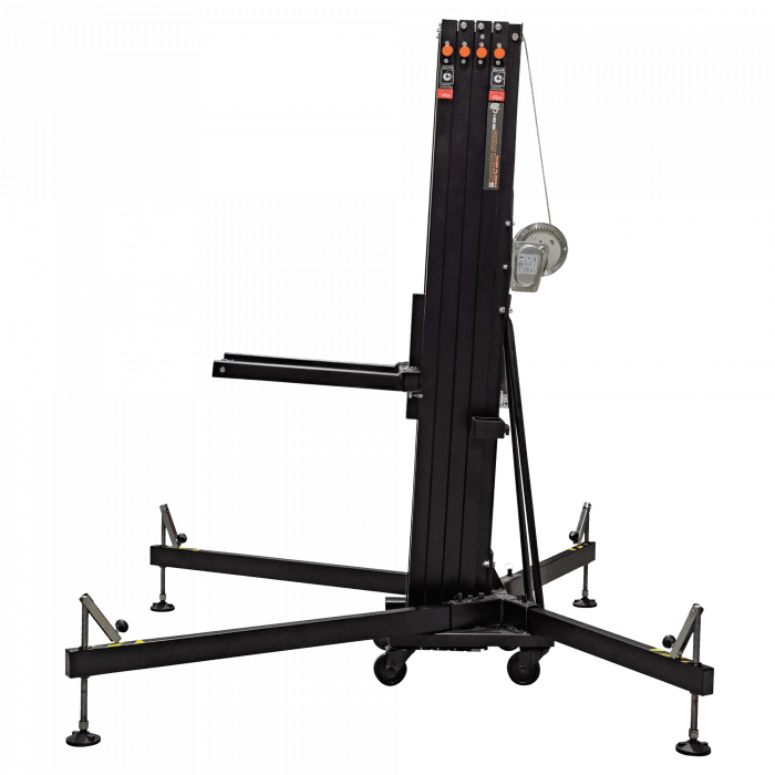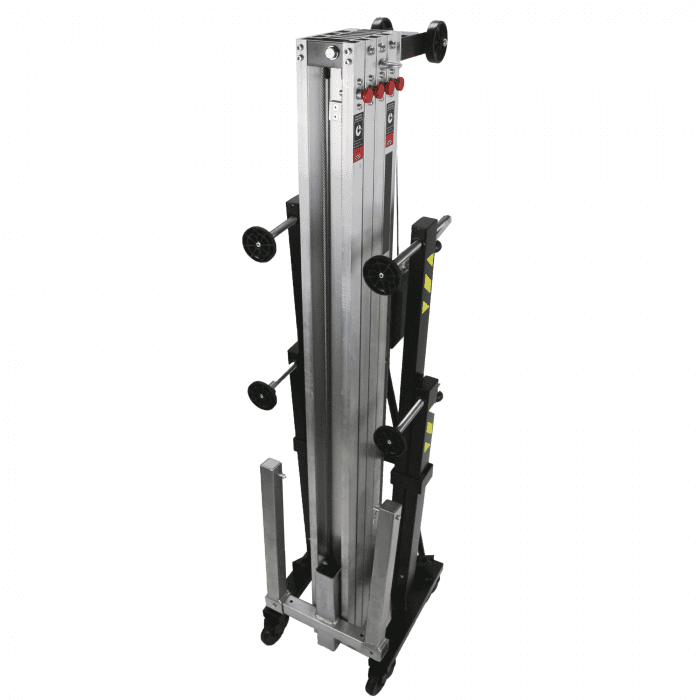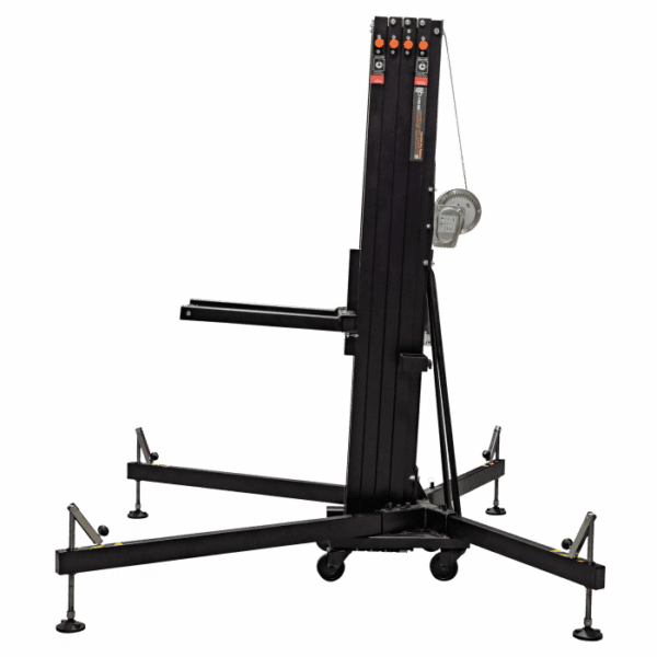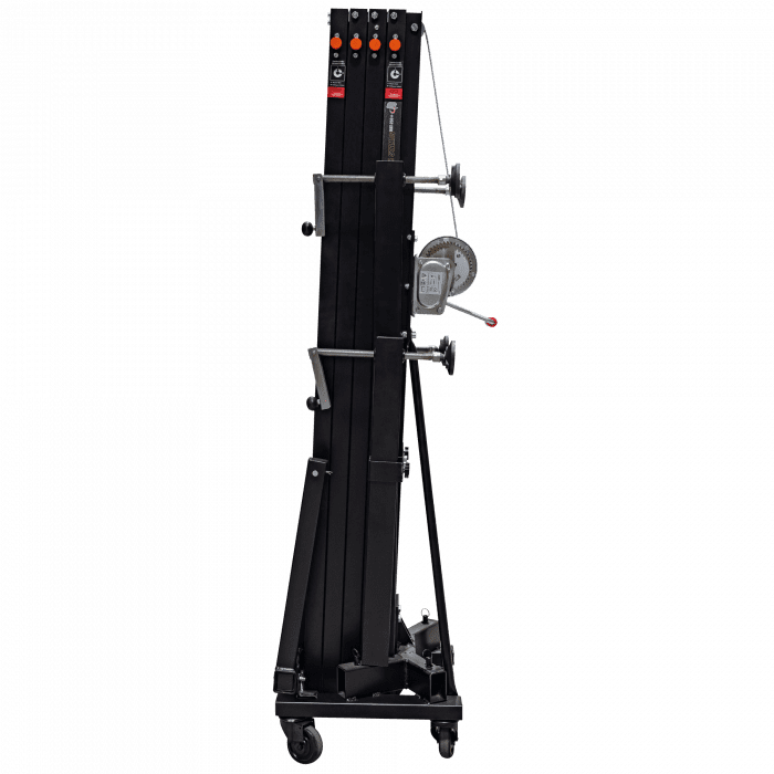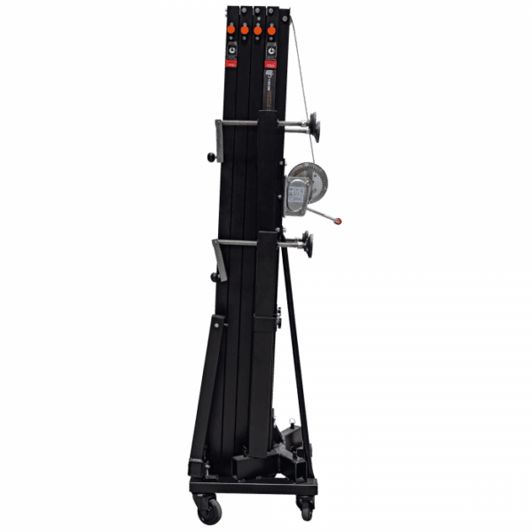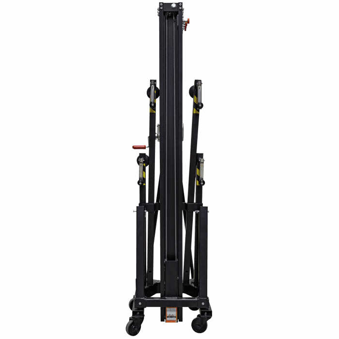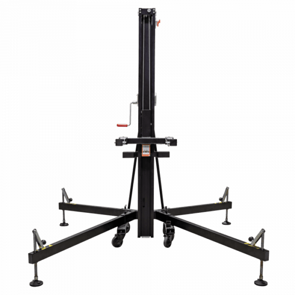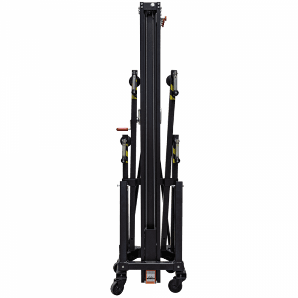 Consultar Transporte Cód. 70873 Showgear – Showgear MAT-250+ Line Array Tower<br /> Torre elevadora Mammoth de 6,5 m orre elevadora de carga frontal Levanta cargas directamente del suelo Carga máxima: 250 kg Altura máxima: 6,5 m Múltiples funciones de seguridad Esta robusta torre elevadora de carga frontal es ideal para alzar sistemas line array, truss y pantallas LED. Puede elevar cargas de hasta 250 kg a una altura máxima de 6,5 metros. Al elevar las cargas directamente del suelo, el esfuerzo del usuario se reduce al mínimo. Las características de seguridad incluyen una base reforzada, un…