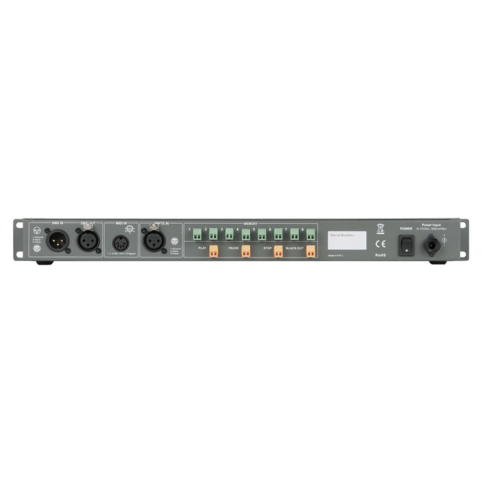 Showtec DR Pro Rack – Grabador DMX, herramienta muy útil para almacenar valores DMX de escenas, secuencias o espectáculos completos.