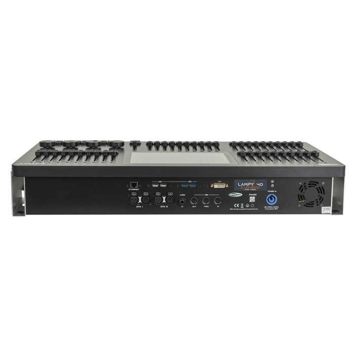 Cód. 50736 Showtec Lampy 40 2U Consola DMX con 40 faders y 2 Universos Premium Consola DMX con un diseño moderno e intuitivo para controlar todo tipo de iluminacíon convencional, móvil o estática, en la mayoria de contextos y aplicaciones Flujo de trabajo claro con pantalla táctil de 10,1″», indicadores LED multicolor y 4 ruedas encoder con pantalla OLED de 1,3″». Entorno virtual intuitivo con Fixture View, Quick Color Picker, OSC y salida de pantalla externa Control simplificado con un generador de efectos integrado para generar rápidamente espectáculos de impacto Diseño lineal con una tira LED para la iluminación de…