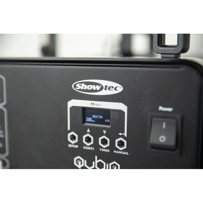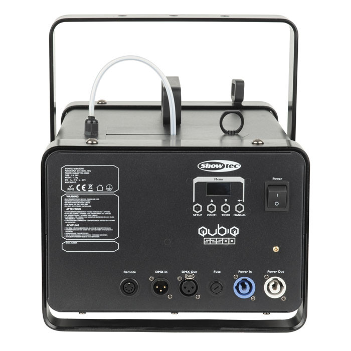 Cód. 61062 Showtec Máquina de humo QubiQ S2500 Máquina de humo de 2500 W de alto rendimiento Premium Fiable y seguro por la protección de temperatura y el sensor del nivel de líquido Potencia continua y estable hasta que se vacía el depósito Nivel de salida ajustable (0–100 %) Manual, control remoto (temporizador) y DMX Capacidad del depósito de 2,3 l La Showtec Qubiq S2500 es una máquina para crear humo profesional de 2500 W. Es fiable, segura e incluye un gran número de características. Además, tiene un diseño práctico y bonito. Será su mejor compañera, tanto en localizaciones pequeñas…