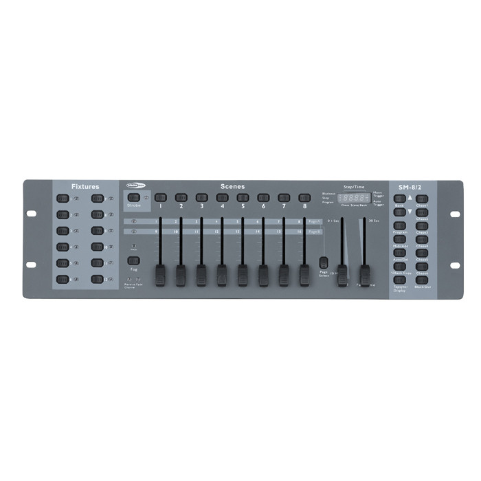 Cód. 50700 Showtec SM-8/2 , Mesa de luces de 16 canales Controlador DMX para dispositivos inteligentes de iluminación Controla 12 dispositivos con hasta 16 canales cada uno Canales asignables para cada dispositivo de iluminación Permite programar la velocidad y el tiempo de fundido de las secuencias 240 escenas y 6 secuencias El SM-8/2 es un controlador de nivel inicial ideal para su uso con aparatos de iluminación inteligente de hasta 16 canales. Tiene 8 faders que pueden controlar 16 canales en 2 páginas. Se pueden seleccionar y programar hasta 12 lámparas. Cada canal puede ser conectado a cualquier fader y…