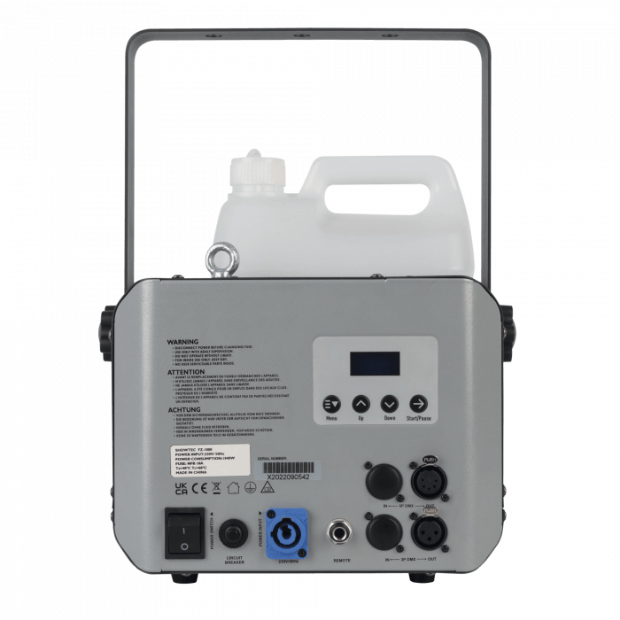 Cód. 61114 Showtec – Stellar FZ-1000 Fazer – Máquina de bruma de 1000 W DESCRIPCIÓN Calentador de 1000 W 7 ml/min Control manual, DMX y remoto Pantalla LCD Diseño robusto y moderno La Stellar FZ-1000 es una máquina de bruma con un diseño robusto y moderno. Cuenta con un calentador de 1000 vatios que permite empezar a utilizar la máquina al cabo de tres minutos de encenderla. Gracias a su ventilador incorporado, la FZ-1000 Fazer es capaz de crear una bruma suave con el líquido de niebla habitual, lo que resulta perfecto para mejorar los efectos de luz. Para facilitar…