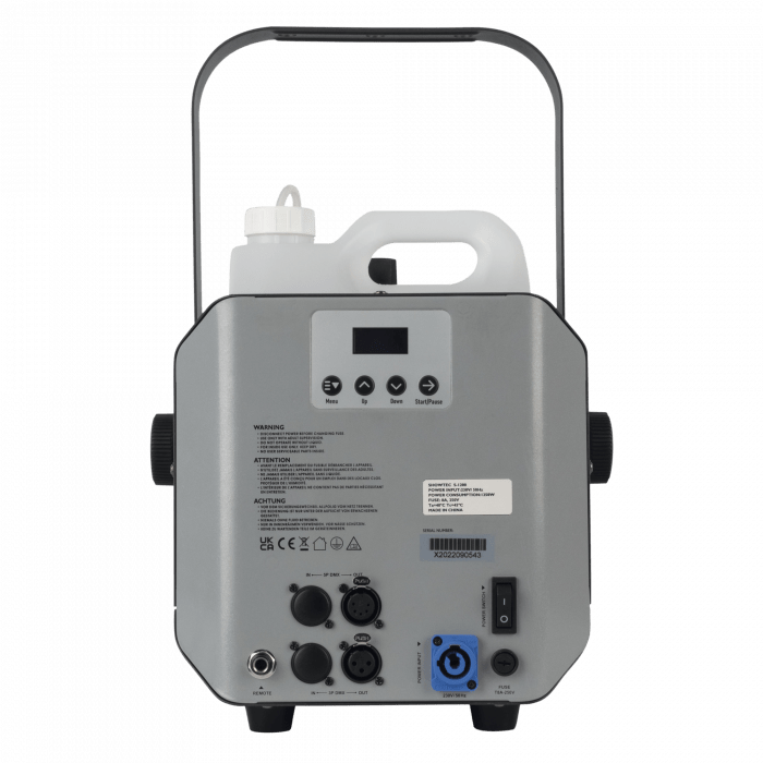Cód. 61115 Showtec – Stellar S-1200 Snow Machine – Máquina de nieve de 1200 W DESCRIPCIÓN 1200 W ventilador 480 ml/min Control manual, DMX y remoto Pantalla LCD Diseño robusto y moderno La Stellar S-1200 Snow Machine es una máquina de nieve con un diseño robusto y compacto. Permite crear una fantasía invernal de forma rápida y fácil. Para facilitar su control manual, dispone de una pantalla LCD clara. Existen, además, otras opciones de control como DMX y un control remoto opcional. Para mejorar los resultados, recomendamos utilizar líquido o concentrado de nieve de Showgear.