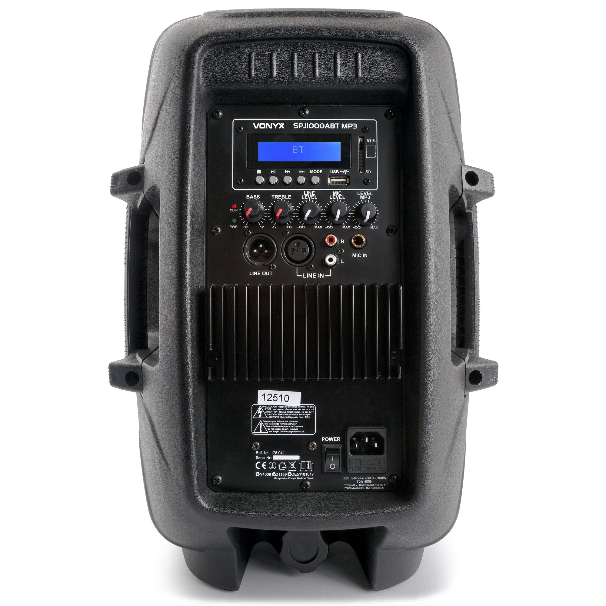 Cód. 178.041 VONYX – SPJ-1000ABT MP3 – Bafle Activo Hi-End BT 10″ 400W DESCRIPCIÓN Bafle de 10″ PA en carcasa rigida de ABS incorporando tecnologia BT, reproductor de MP3, amplificador / mezclador de 400W, woofer de alta potencia y motor de agudos de alta dispersion. La tecnologia BT permite una facil ubicacion del equipo. El reproductor de MP3 permite escuchar los ficheros de un stick de USB o de una tarjeta SD. La salida de linea permite enlazar varios bafles activos. El recinto ligero de ABS se termina con rejilla metalica protectora para el woofer. Ideal para aplicaciones en bares,…