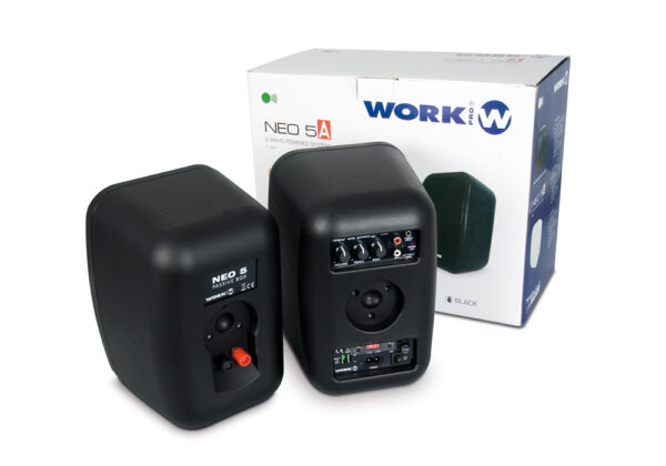 SELECCIONAR Y ESPECIFICAR EN EL PEDIDO EL COLOR BLANCO O NEGRO. Cód. NEO 5A WORK – NEO 5A – Caja acústica activa de instalación , Woofer 5′ + Tweeter 1′ (activa + pasiva). 2x25W RMS. Pr/par.