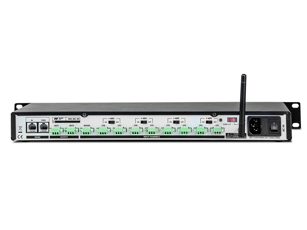| Otras funciones | Automix con target y ganancia configurables, app iOs y Android de control remoto, Control por comandos RS 485 |