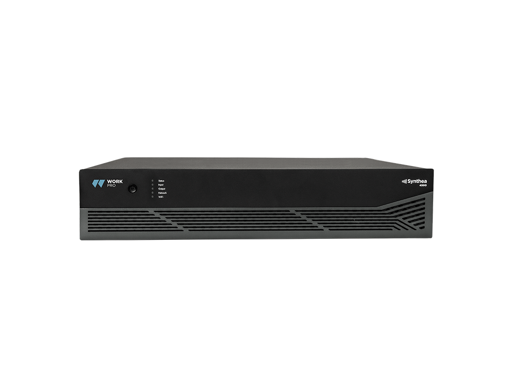 WORK PRO – SYNTHEA 4500 – Amplificador 4x500W @4 ohm / 2x1000W (100V line) Entrada y salida digital de señal para facilitar su interconexión sin conversiones. DSP dedicado con conectividad y control total vía Wi-Fi autónoma. Ethernet y GPIO