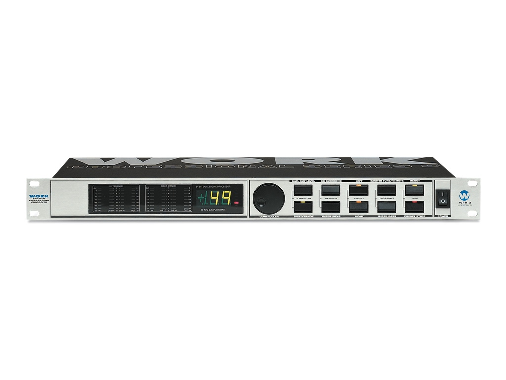 Cód. WPR 2 Work pro – WPR 2 – Procesador audio digital para mastering. Maximizador, Excitador, Limitador, SuperBass, Denoisser. Control MIDI. DESCRIPCIÓN WPR 2 reúne en un mismo dispositivo un procesador, un compresor y un crossover digital. El procesador estéreo 3D surround aumenta la sensación espacial del sonido y mejora la imagen estéreo. El procesador de frecuencias graves por su parte crea un sonido de mayor transparencia y profundidad. El sistema de compresión integrado maximiza la energía de la señal final con una compresión «inaudible» y transparente. El limitador «Brickwall» multibanda protege la unidad contra cualquier pico de señal o…