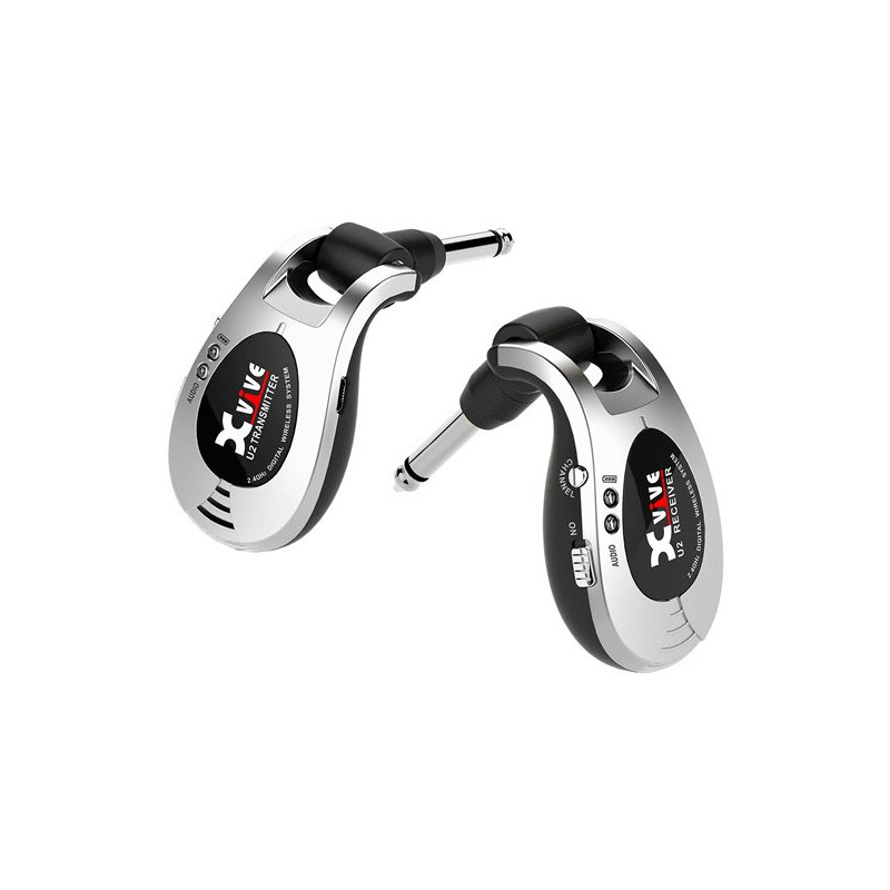 Sistema inalámbrico profesional para guitarra. Transmisión a 2,4 GHz. Incluye transmisor y receptor. Alcance: 30m. Respuesta en frecuencia: 20Hz – 20kHz. 4 canales. Conversión A/D a 24 bits. Rango dinámico: 103 dB. Duración batería: 5 horas. Batería de litio recargable. Incluye cable USB de carga dual simultánea para receptor y emisor. No necesita fuente de alimentación. Color: Plateado.