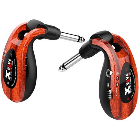 Sistema inalámbrico profesional para guitarra. Transmisión a 2,4 GHz. Incluye transmisor y receptor. Alcance: 30m. Respuesta en frecuencia: 20Hz – 20kHz. 4 canales. Conversión A/D a 24 bits. Rango dinámico: 103 dB. Duración batería: 5 horas. Batería de litio recargable. Incluye cable USB de carga dual simultánea para receptor y emisor. No necesita fuente de alimentación. Color: Madera.